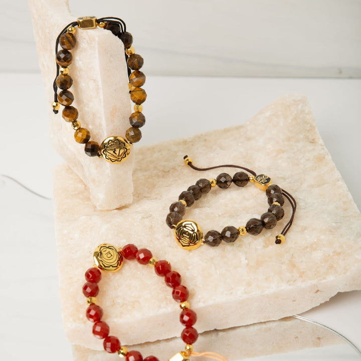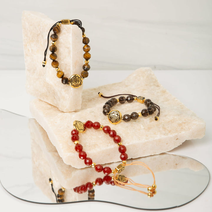 This Solar Plexus Chakra Tiger’s Eye Bracelet by Seven Saints is a radiant emblem of empowerment and protection. Designed to align and awaken the Manipura Chakra, it channels personal strength, courage, and confidence. The faceted tiger’s eye beads exude grounding energy, serving as a spiritual shield while reminding the wearer to embrace self-empowerment and inner grace.