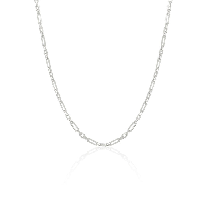 This Sterling Silver Link Chain Necklace - Silver by Spero London is a simple yet striking accessory designed to bring a touch of dazzling shine to any look. The shimmery, jacketed link chain catches the light beautifully, ensuring you get noticed. Its minimalist design makes it a versatile piece that can be worn alone as a subtle statement or layered with other necklaces for a more dramatic effect. This piece is a durable and long-lasting addition to your jewelry collection.