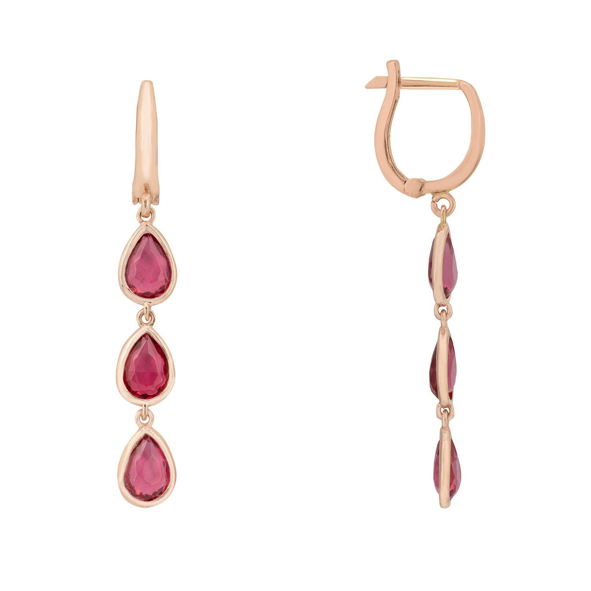 Sardinia Triple Teardrop Earrings Rosegold Pink Tourmaline