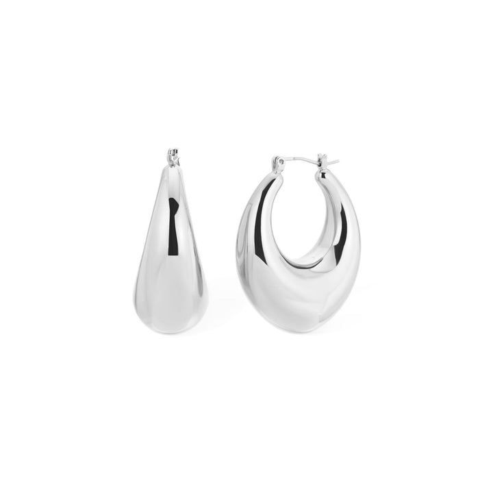 These hoops are crafted from a base metal coated in a layer of rhodium. They measure 5mm and are water-resistant and hypoallergenic.
