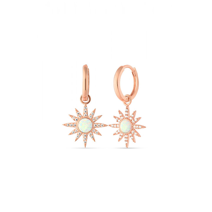 Drop Hoop Sun White Opal Earring Sterling Silver - Rose Gold