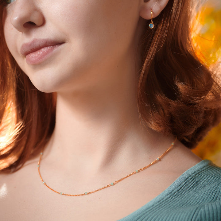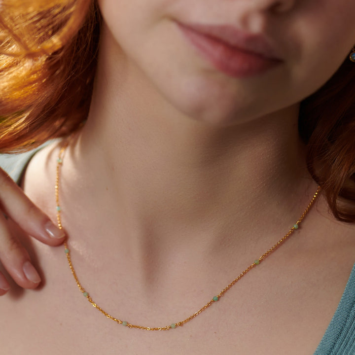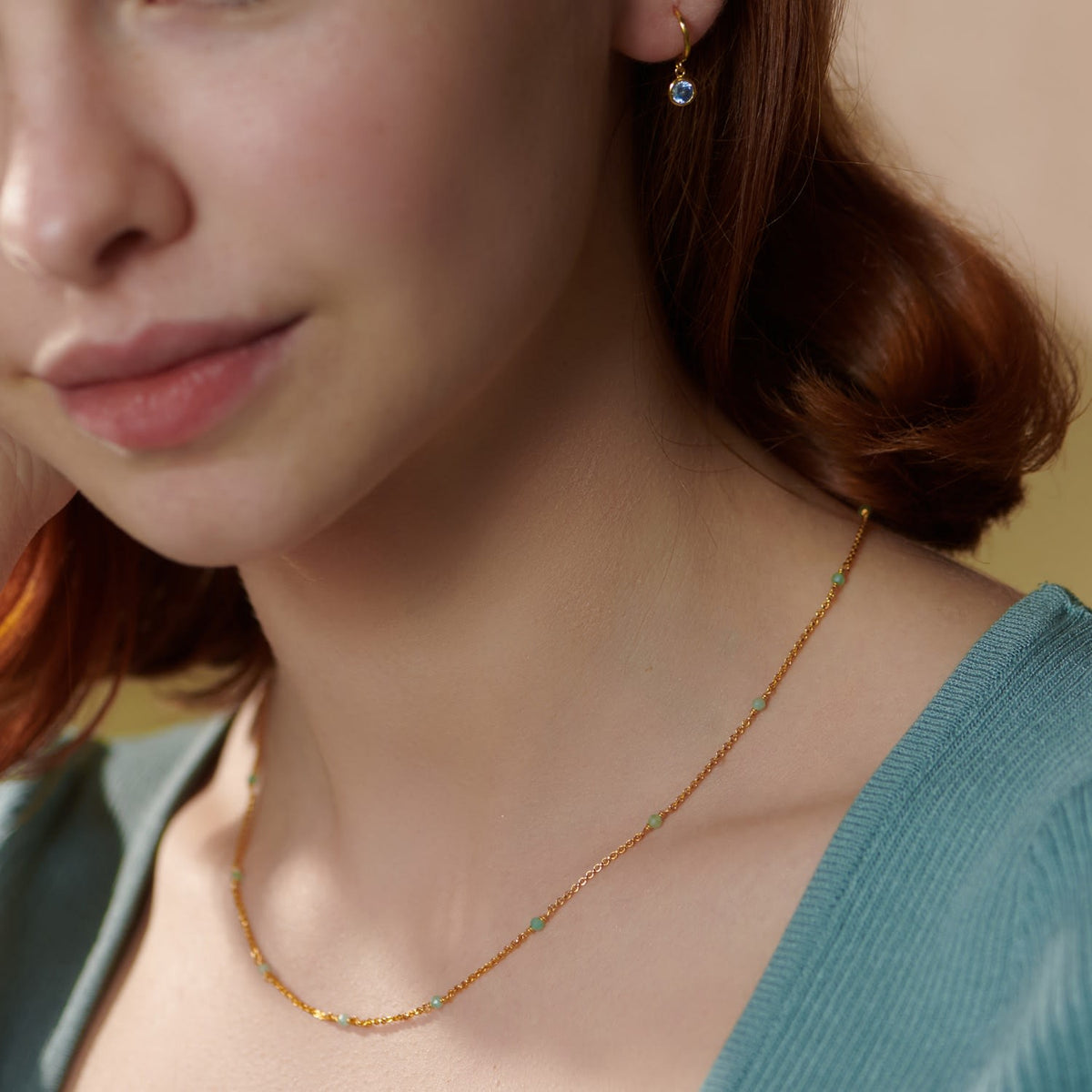 Gold vermeil chain. Features amazonite gemstone pendant.