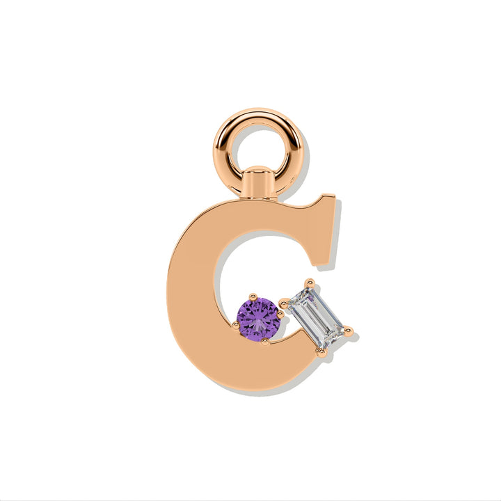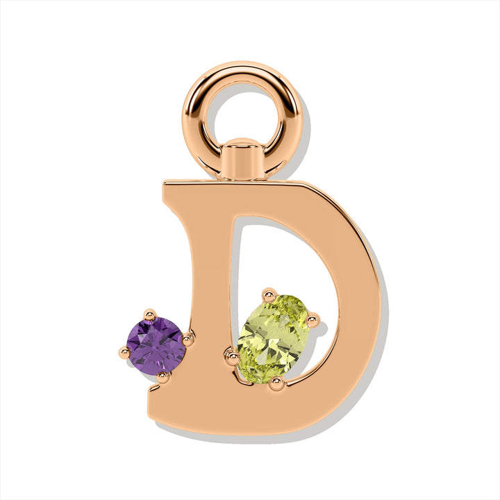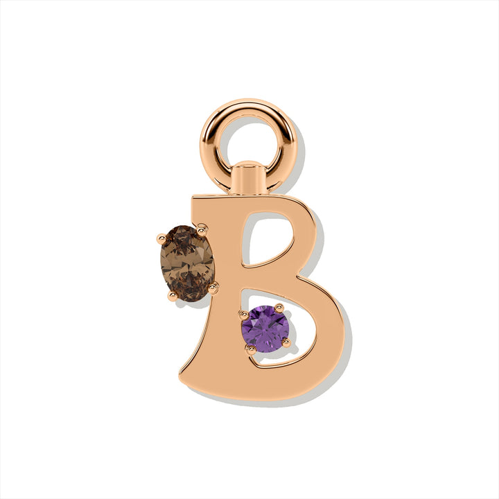 Handcrafted in rose gold-plated sterling silver. Customizable letter charm design. Gemstone options include lapis, smoky quartz, amethyst, citrine, lemon quartz, peridot, malachite, rose de franc, and white topaz. Twist-and-lock mechanism for secure, versatile wear.