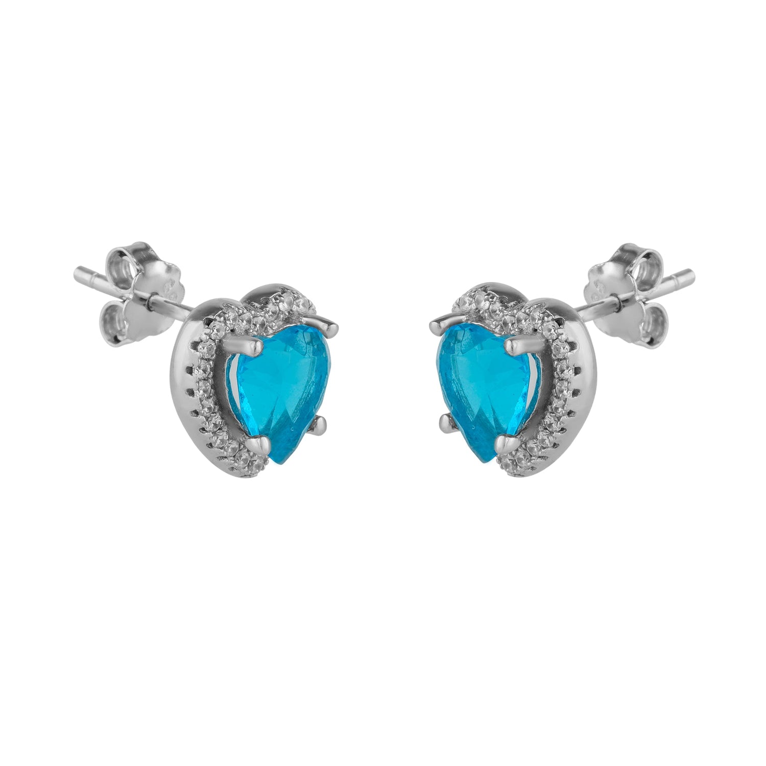 Heart Of Ocean Blue Sterling Silver Stud Earrings