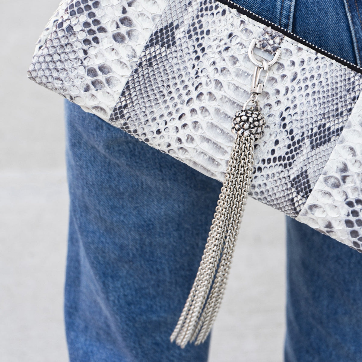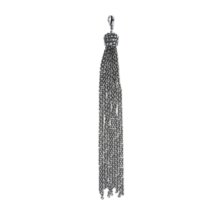 This Large Silver Chain Tassel Clip-On Charm by Lovard is an elegant and powerful accessory. The long chain tassel adds a dramatic and sophisticated touch, allowing you to customize your bag or necklace with a unique charm. This versatile piece gives you the freedom to mix and match for a variety of looks, perfect for elevating any outfit.