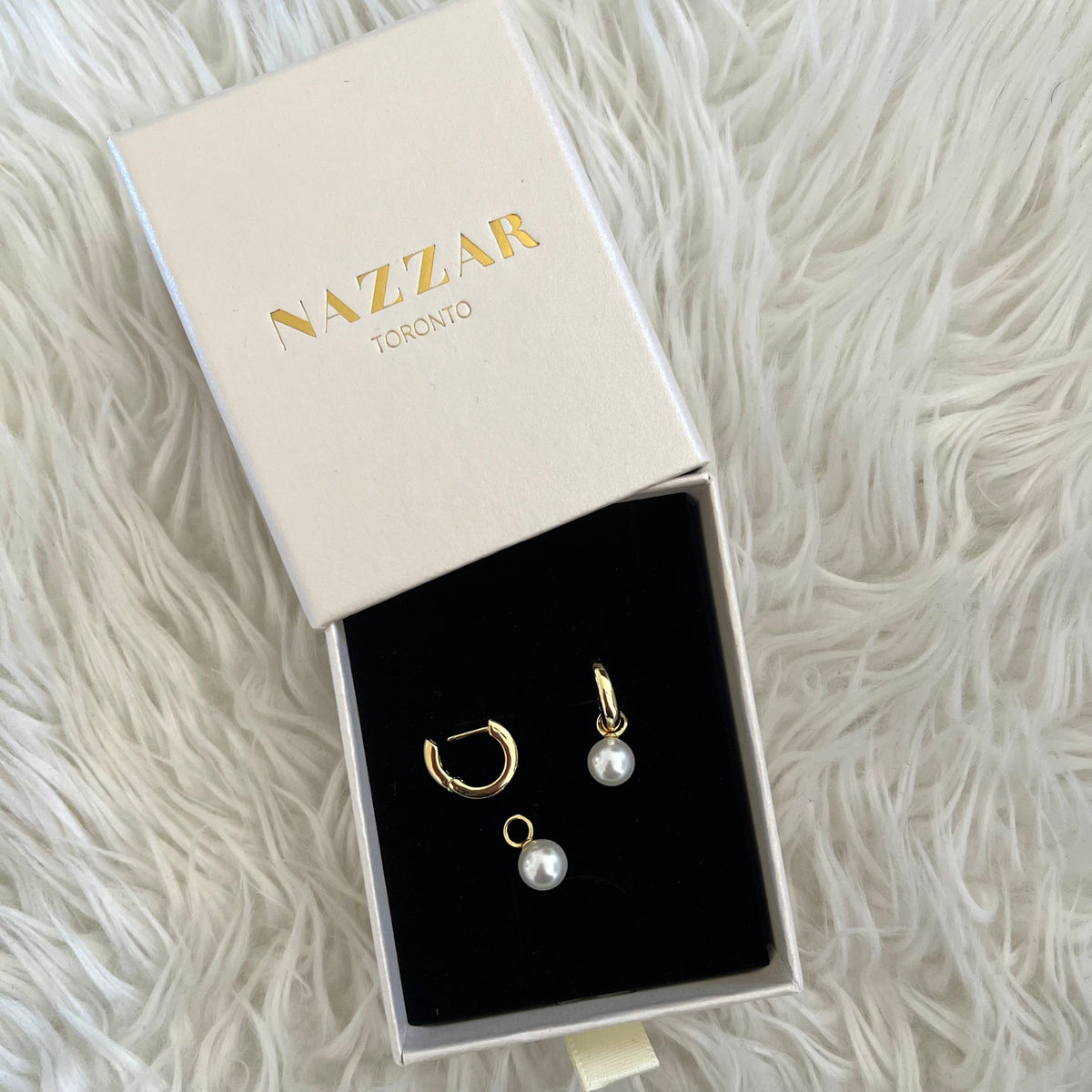 These Pearl Charm Mini Gold Hoop Earrings by Nazzar bring classic charm with a contemporary twist. Mini hoops with dangling pearls capture elegance in motion, making them perfect for day-to-night style. A chic essential that embodies both modernity and timeless beauty.