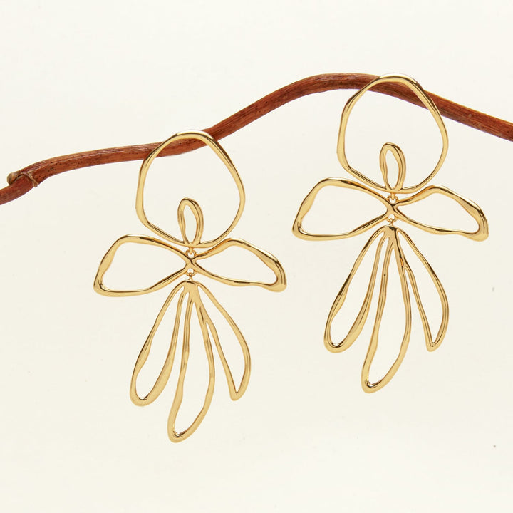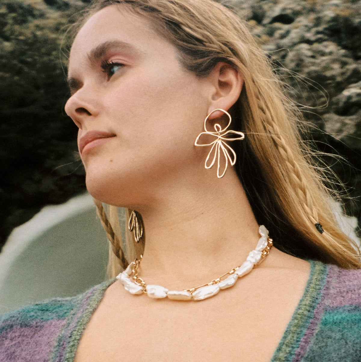 These Sade Earrings Gold by Mignonne Gavigan are a golden, abstracted work of art that feels both organic and sculptural. Their unique floral motif and airy sense of levity make them a standout piece with a touch of modern artistry. These are the perfect go-to earrings to wear with everything, adding a sophisticated and effortless sculptural feel to any outfit. They embody a sense of lighthearted elegance and are destined to be a new favorite.