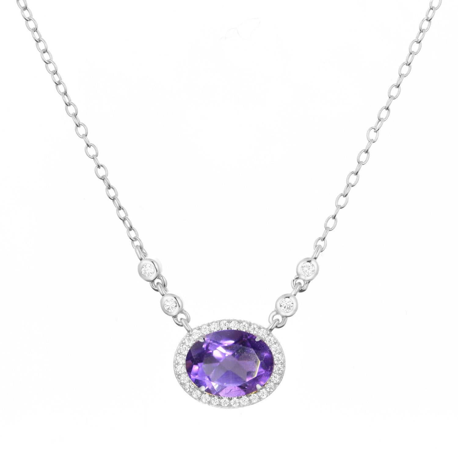 Made from 925 sterling silver with gold plating and organic e-coating; features purple amethyst gemstone and crystal accents.