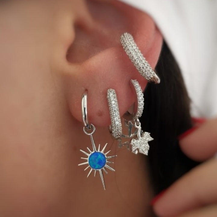 Blue Opal Northern Star Starburst Drop Hoop Earring Sterling Silver - Silver