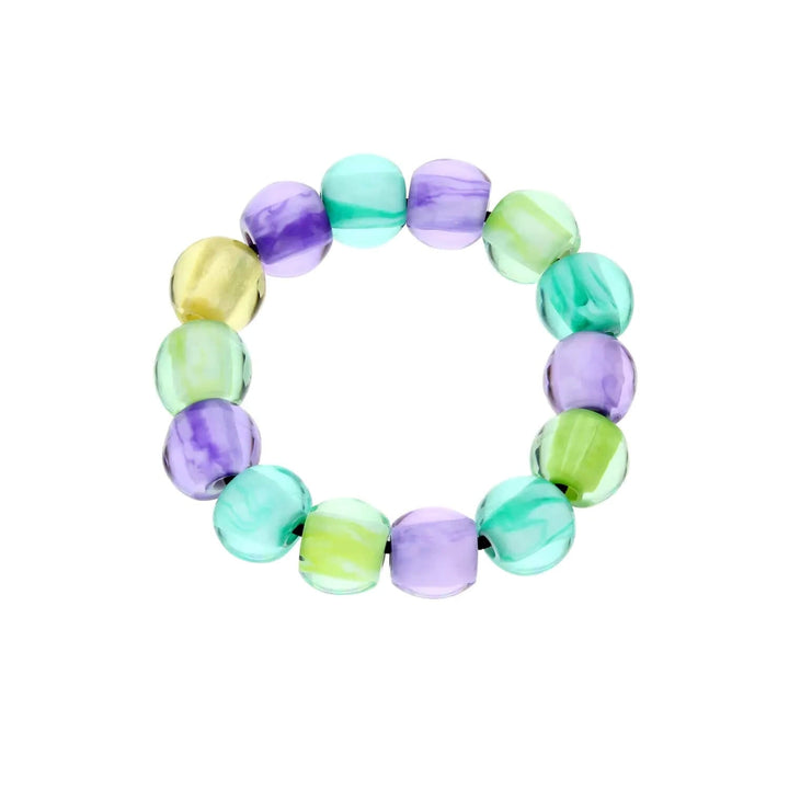 This Stretch Multi Color Bead Bracelet by Gold & Honey is a fun and eye-catching accessory. This handmade slip-on bracelet features multiple layers of lucite beads that give a unique marble effect. Each piece is unique due to its handmade nature. It's a statement piece that can be worn with a sun dress or a simple t-shirt, perfect for adding a pop of color to your summer style.