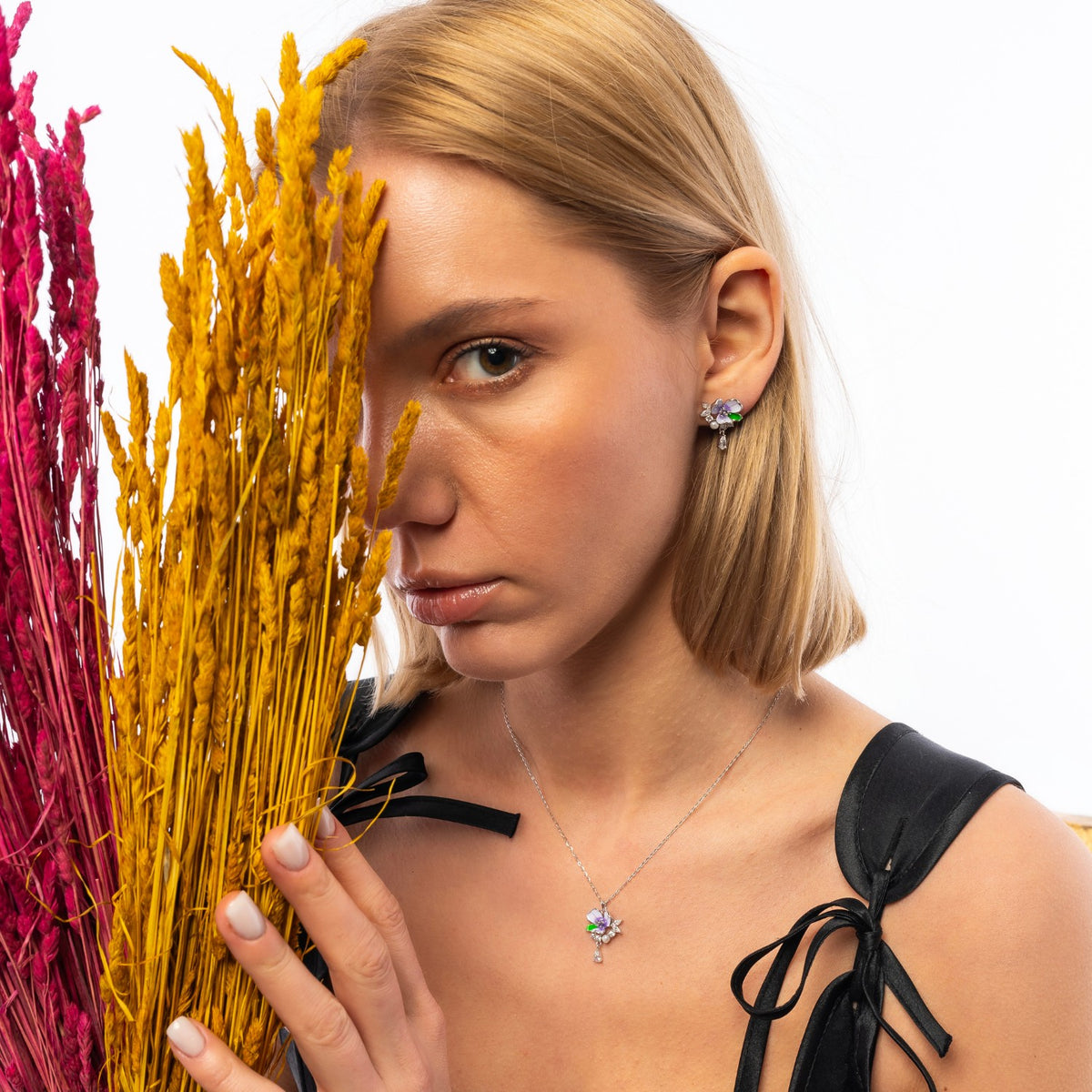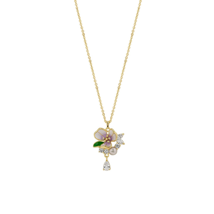Pansy Violet Floral Necklace In Sterling Silver - Gold