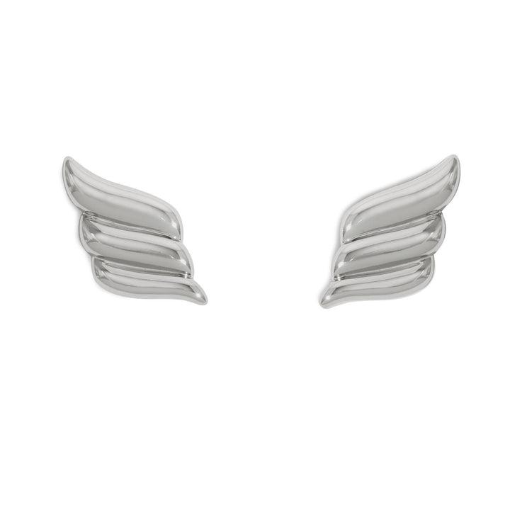 These Angel Wing Studs by Drae Collection are a statement-making accessory that radiates confidence. Inspired by Art Deco trends, these original earrings remind us of the wings of angels, perfect for those who believe in divine protection. They are made of Brass plated with a very thick layer of solid 925 Sterling Silver and are plated with e-coat for extra luster and durability. These earrings are long-lasting and resistant to tarnish and water.