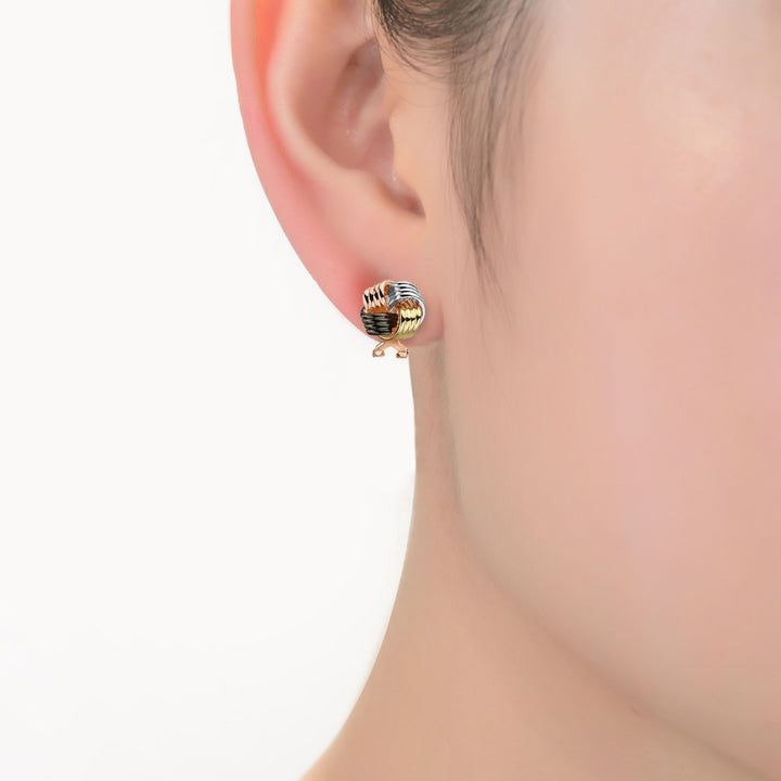 Crafted from sterling silver, these stud earrings feature 14k gold, rhodium, black, and 18k rose gold plating. They are secured with a butterfly closure.