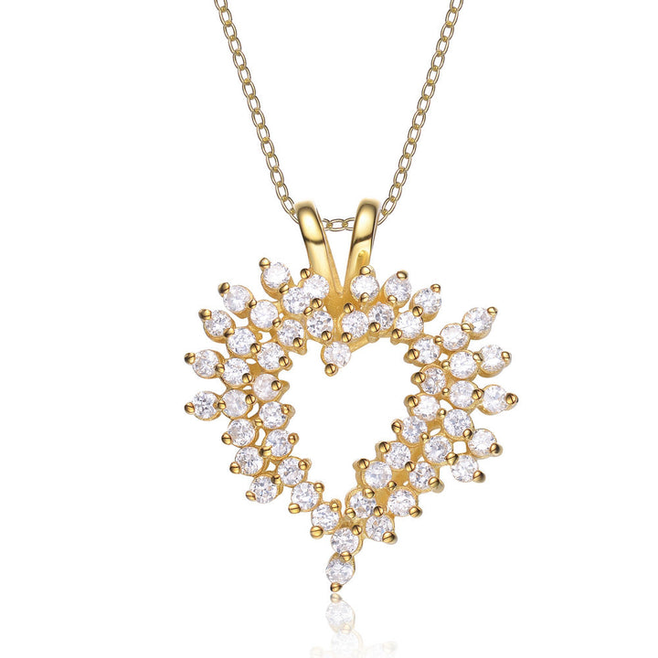 This necklace is crafted from sterling silver with gold plating. The open heart pendant is accented with clear cubic zirconia stones.