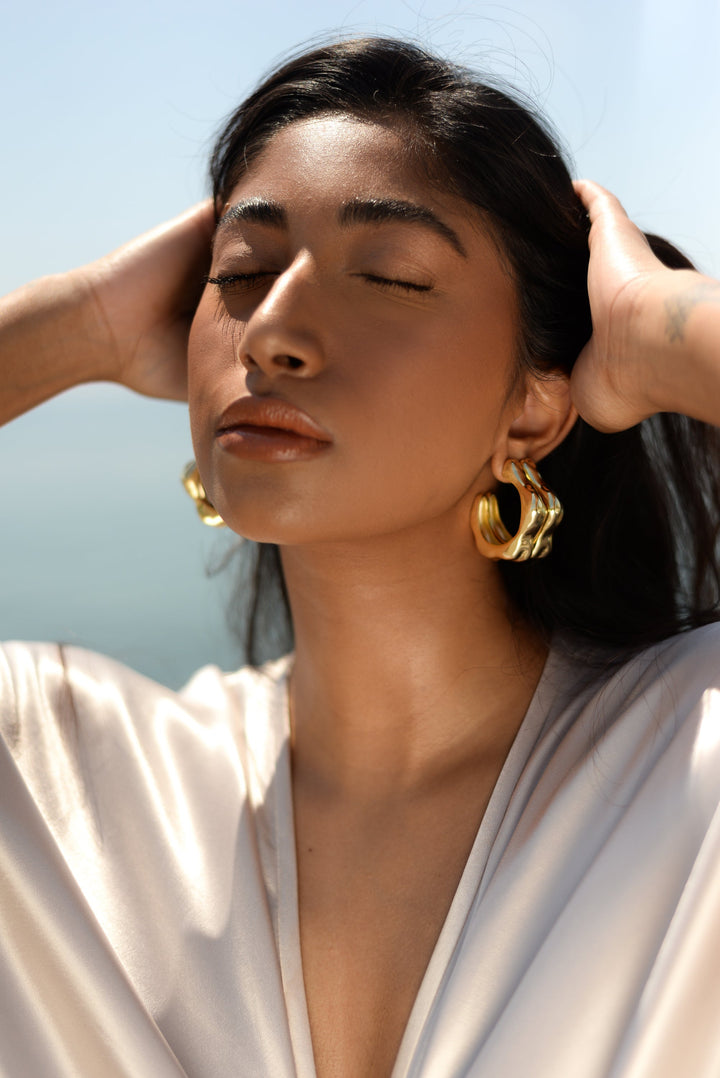 These Shara Hoops by Drae Collection are a bold and luxurious statement piece. Named after and inspired by a South Asian background, their unique style is designed to make you feel beautiful and one-of-a-kind. These hoops are perfect for turning heads and adding a touch of sophisticated flair to any outfit. Their high-quality craftsmanship ensures they are long-lasting and resistant to tarnish, making them a durable and stunning accessory.