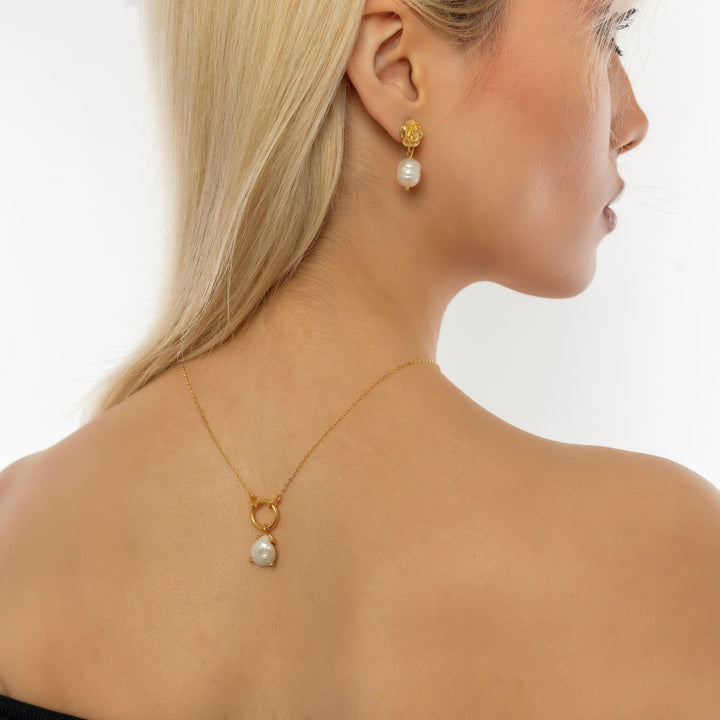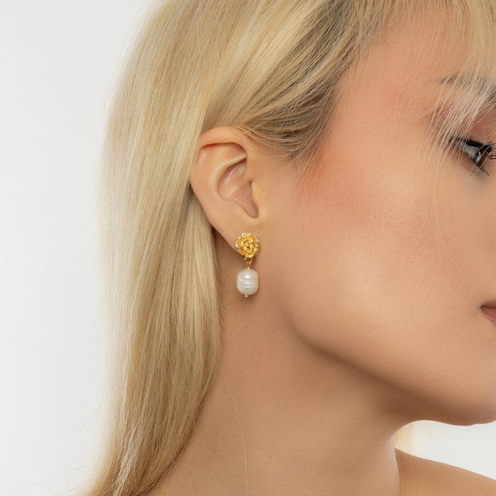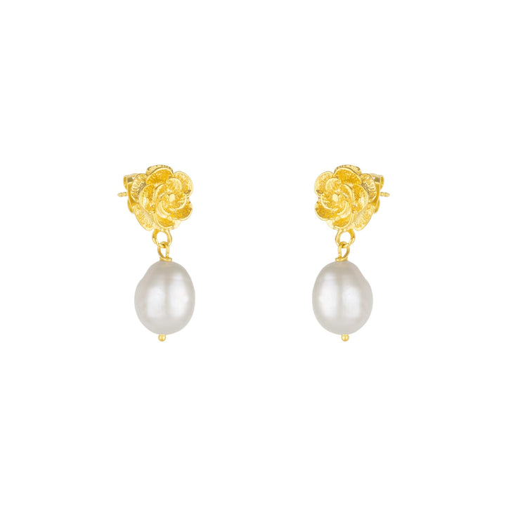 Gold Rose Drop Earring With Pearl