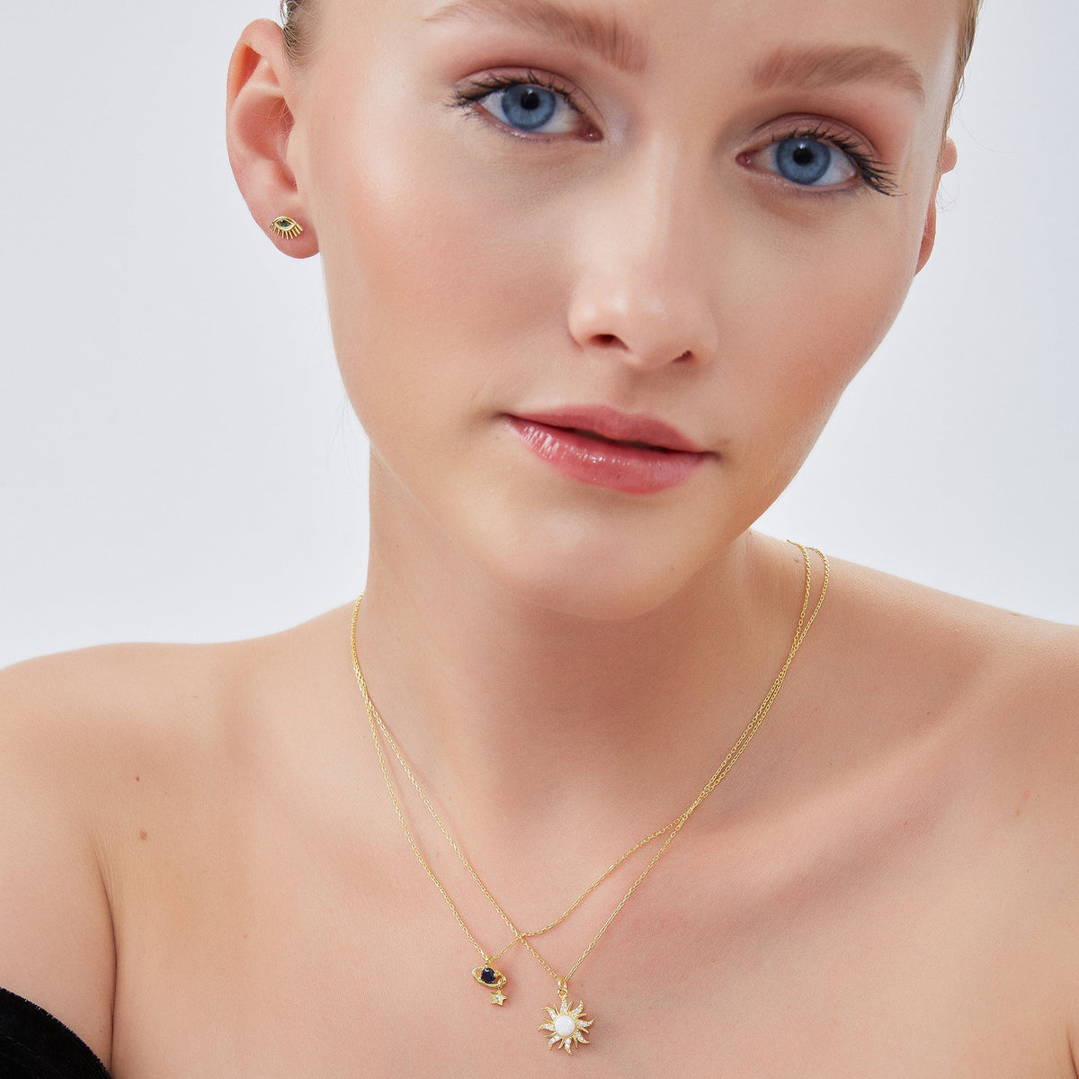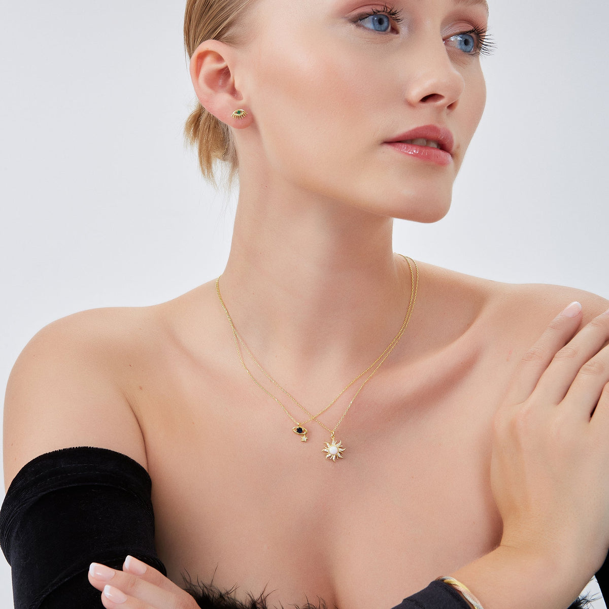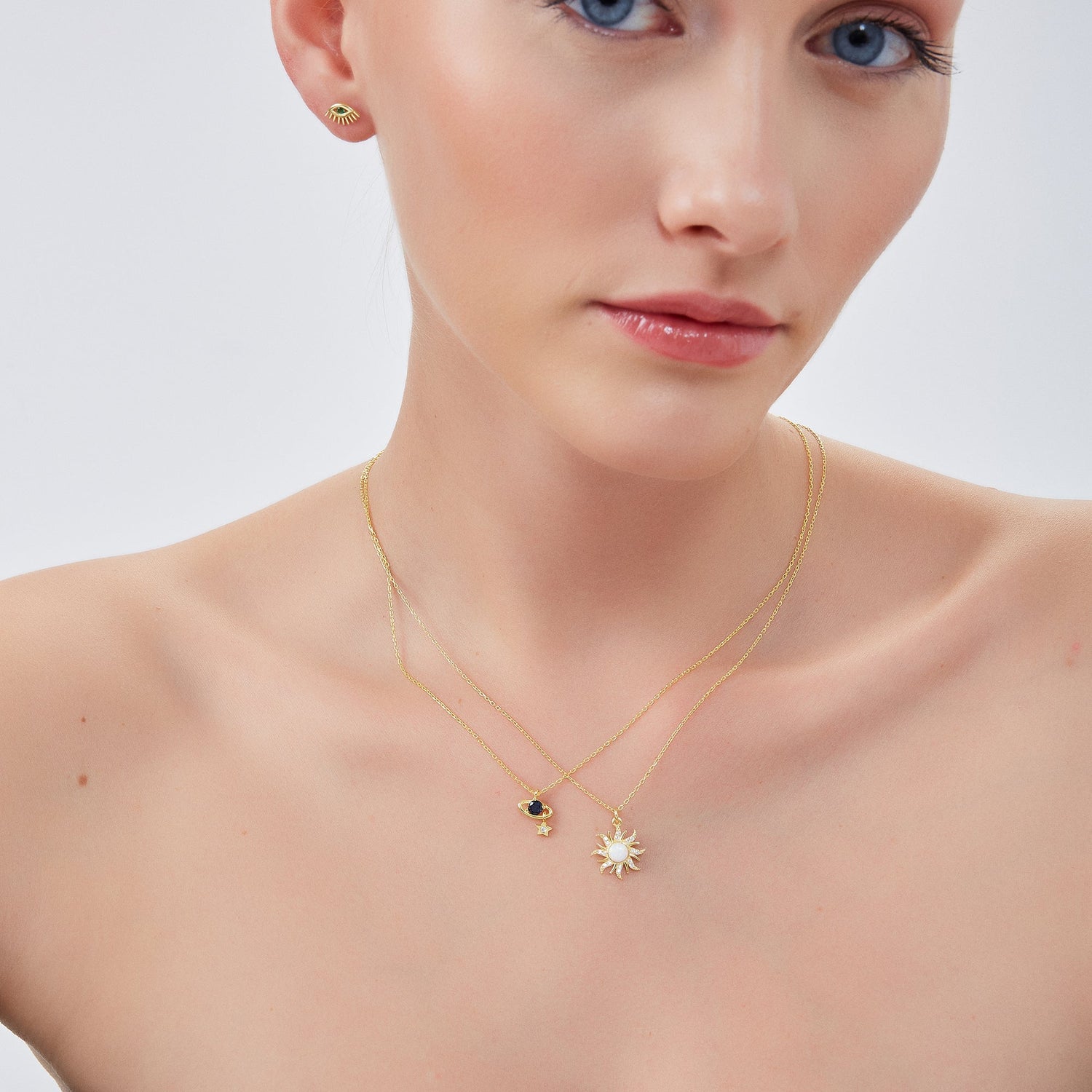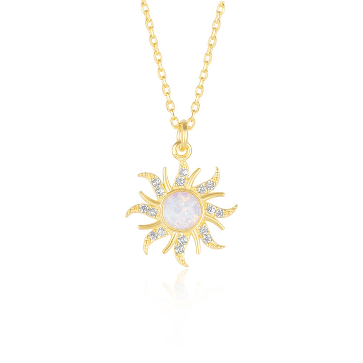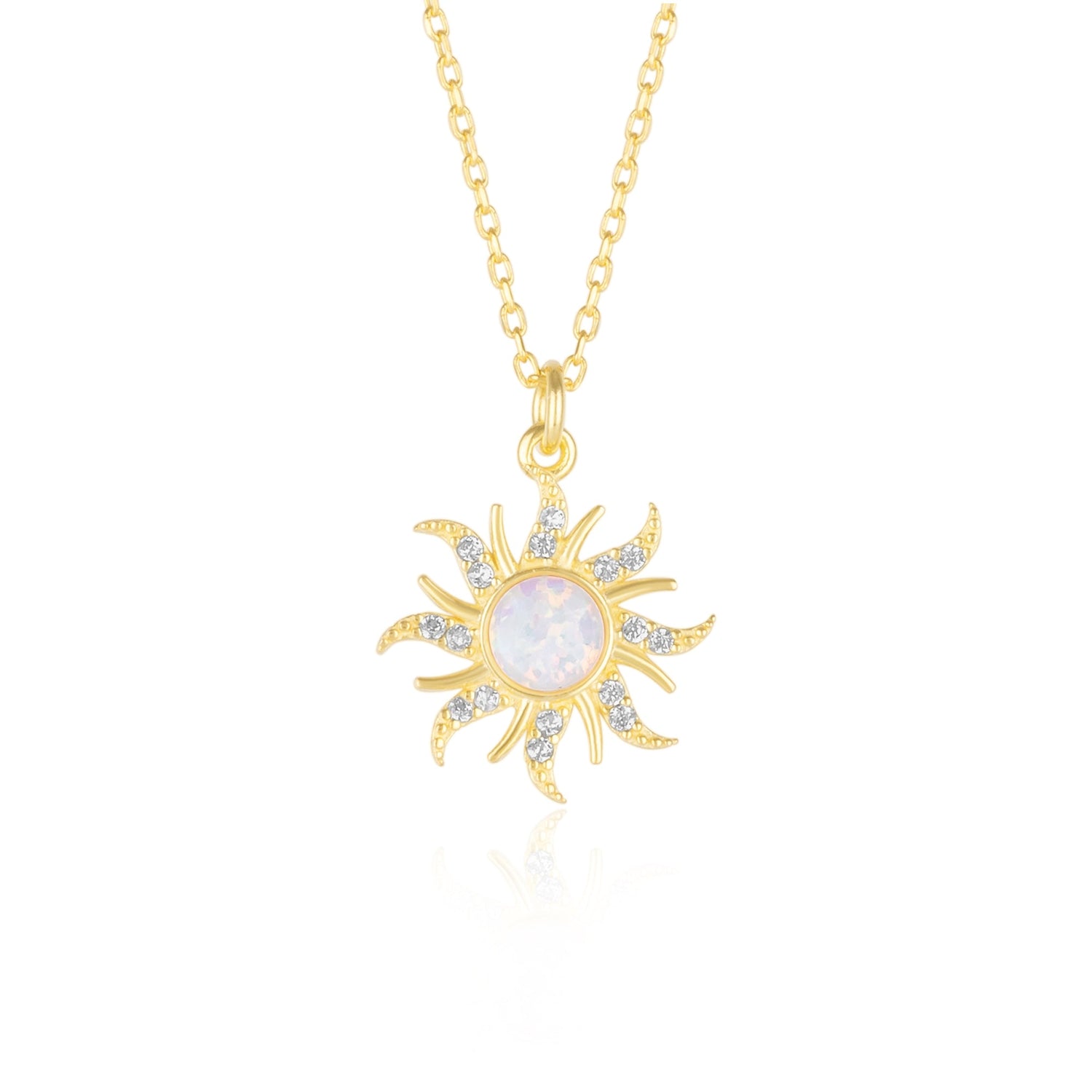 White Opal Sun & Sunburst Necklace In Sterling Silver - Gold