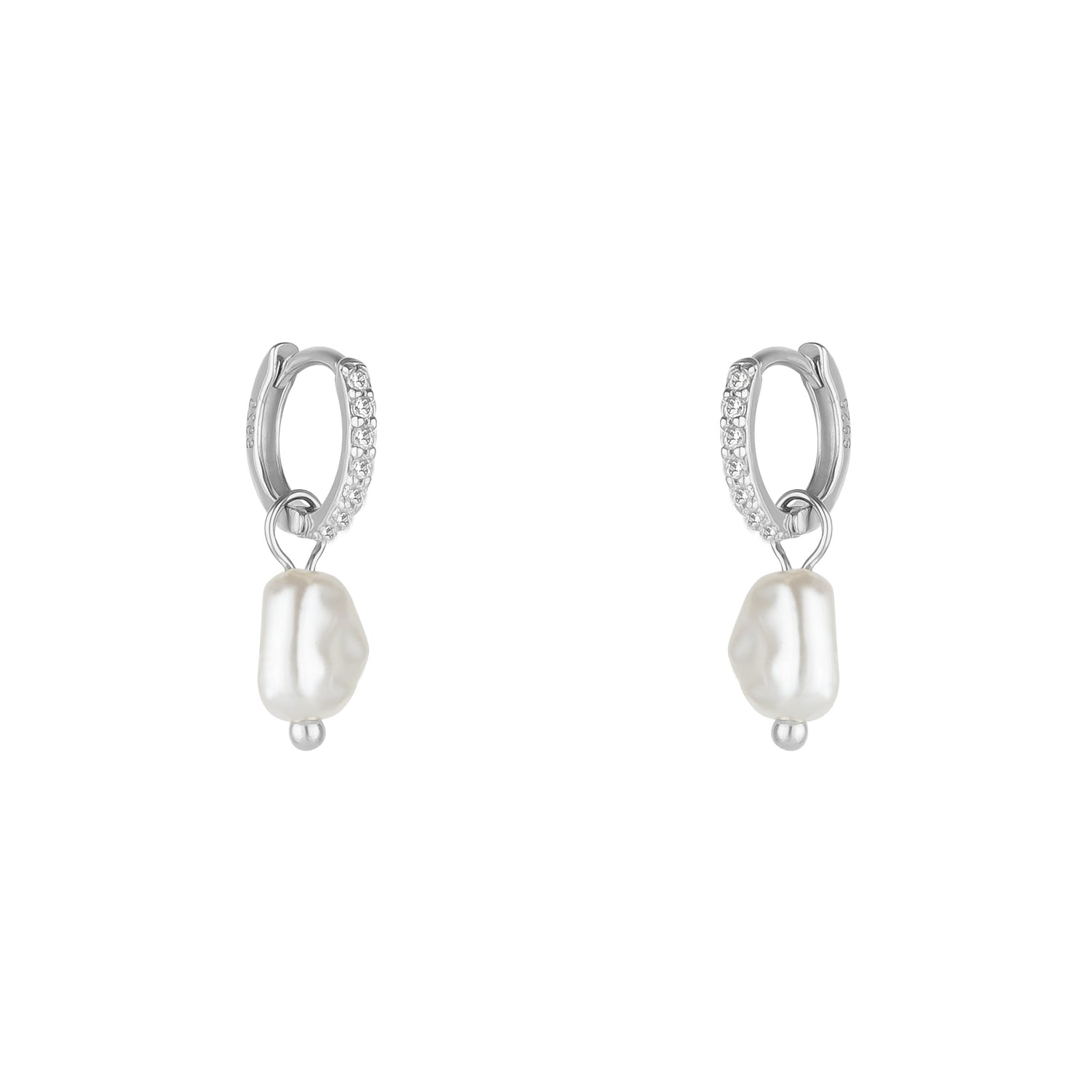 These huggie hoop earrings are made from 100% fine sterling silver and feature pearl drops.