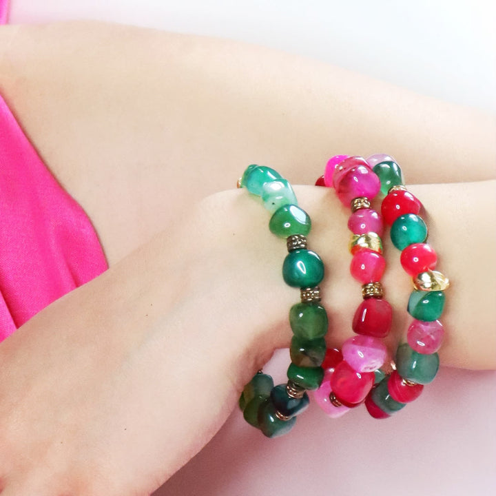 This Green Agate Natural Stone Bracelet by Lara Ari is a beautifully handcrafted piece that promotes strength and emotional balance. Made with natural green agate stones in vibrant, earthy tones, it highlights the unique organic beauty of the gemstone. Known as the "stone of grounding," agate is believed to neutralize negative energy and inspire vitality and optimism. Finished with gold-plated brass components, this bracelet is a bold yet refined accessory perfect for both everyday wear and special occasions.