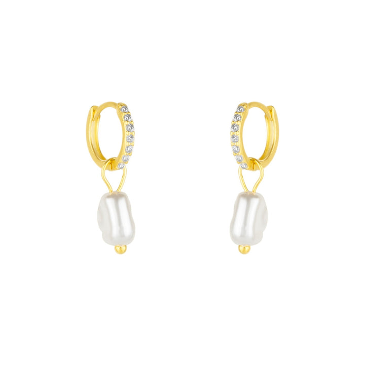 Sterling Silver Huggie Pearl Drop Earrings - Gold