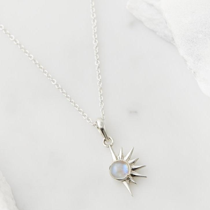 This Total Eclipse Silver Necklace with Moonstone by Charlotte’s Web Jewellery channels celestial magic and the symbolism of renewal. Featuring a luminous rainbow moonstone set in sterling silver, the pendant evokes the awe of an eclipse and the promise of new beginnings. Moonstone, the June birthstone, has long been associated with calm, peace, and healing energies, making this necklace a deeply symbolic gift or personal talisman. Its enchanting glow makes it as magical as it is meaningful.
