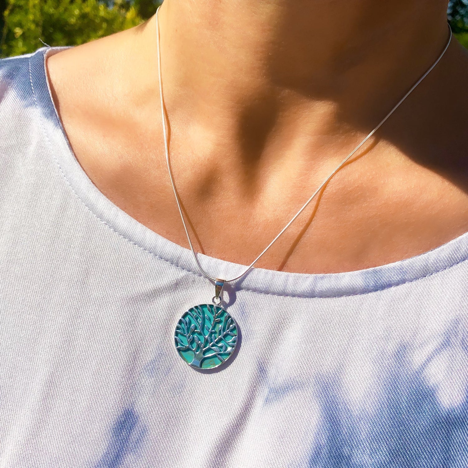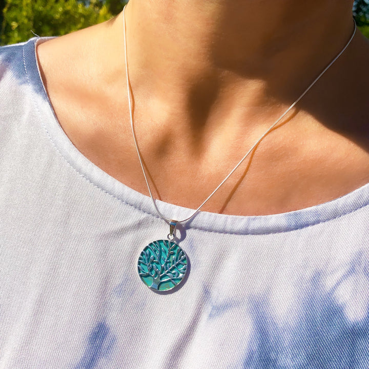 Tree Of Life Healing Silver Necklace - Turquoise