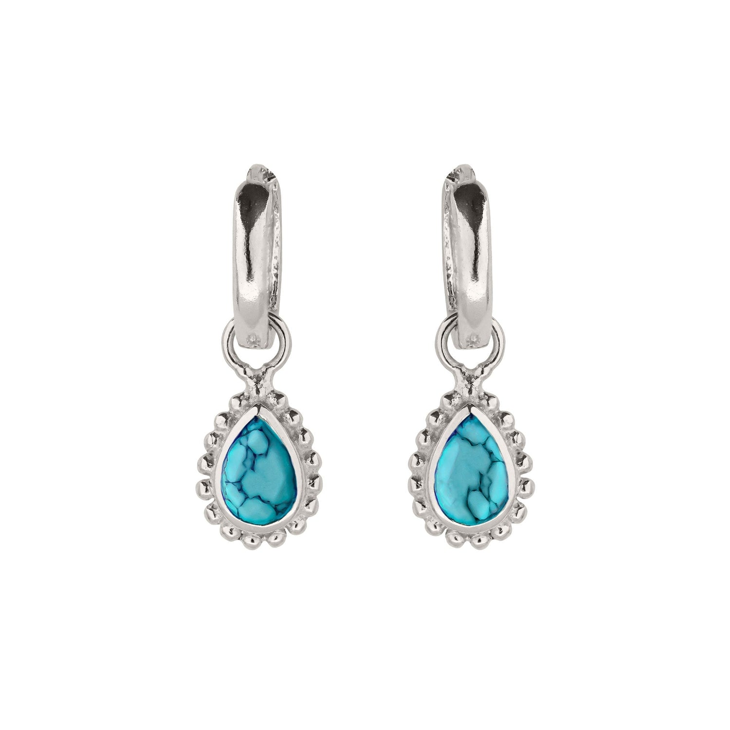 December Birthstone Sterling Silver Huggie Hoops - Turquoise