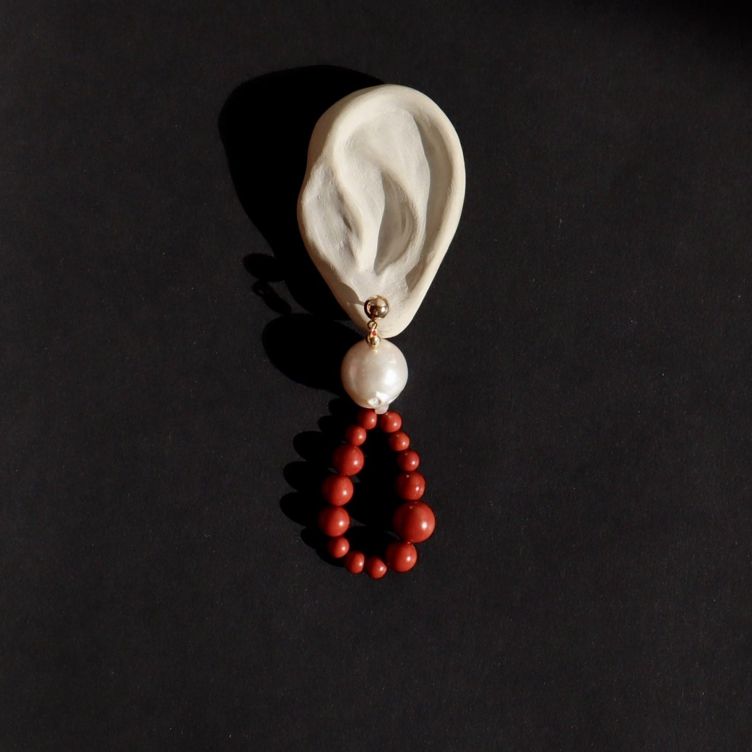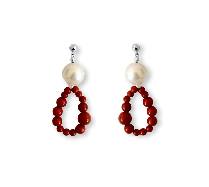 These earrings are handmade with natural red Jasper and Baroque pearls. They are available in 24-carat gold plated brass or 925 sterling silver.