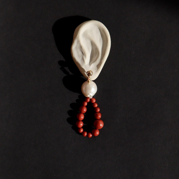 These Sille Earrings by Gem Island are a captivating and elegant piece that combines natural beauty with artistic design. They feature irregular curves and the intense pigments of natural red Jasper and Baroque pearls. Red Jasper is an anchoring stone that stimulates courage and confidence, while Mother-of-pearl evokes maternal love and tenderness. This combination of materials makes these earrings not only beautiful but also deeply meaningful, bringing a sense of warmth and inner strength to the wearer.