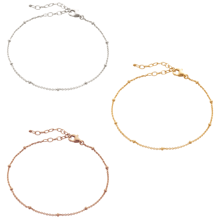 Bead Curb Chain Sterling Silver Adjustable Satellite Bracelet - Gold - Silver - Rose Gold