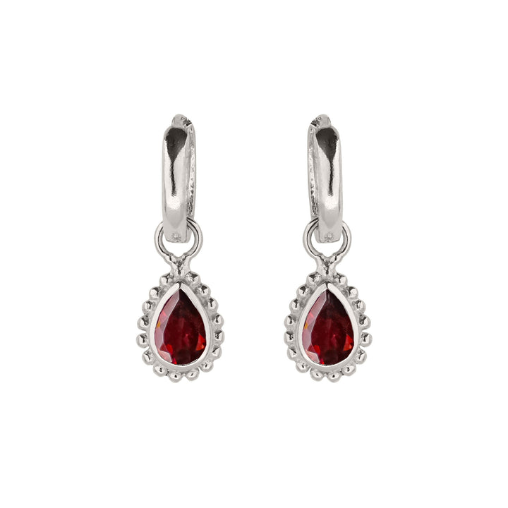 January Birthstone Sterling Silver Huggie Hoops - Garnet