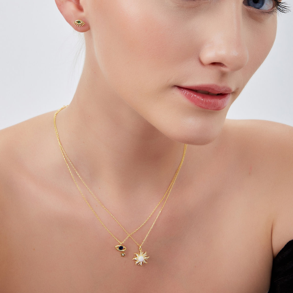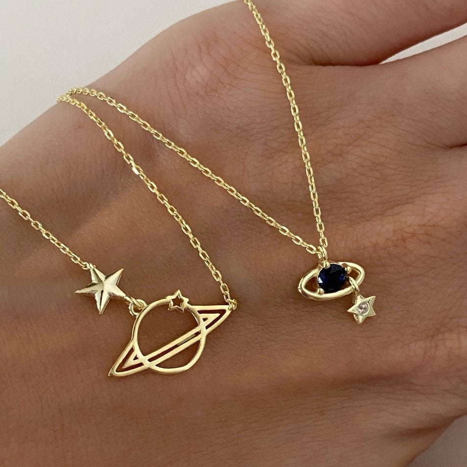Dark Blue Saturn Necklace With Star Sterling Silver