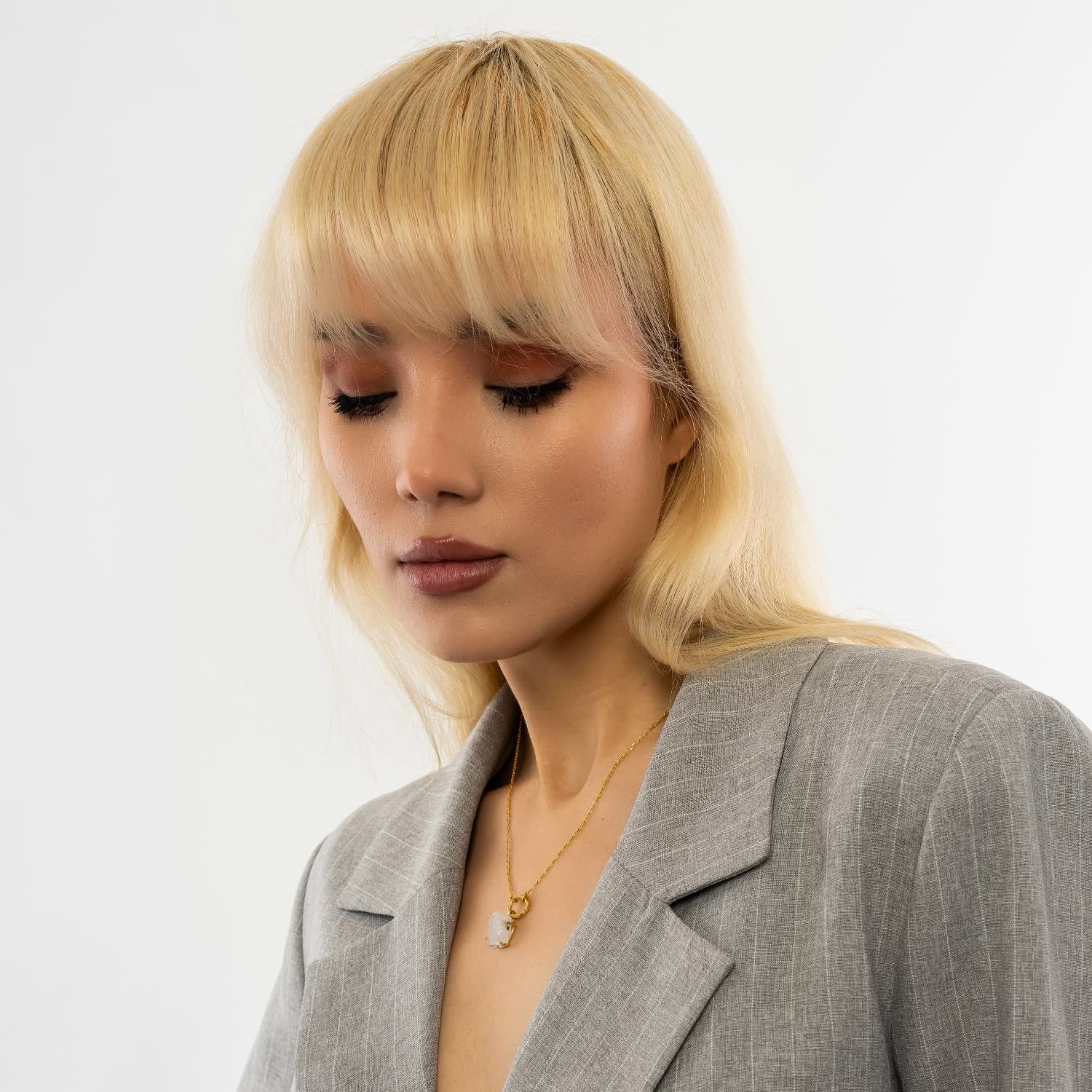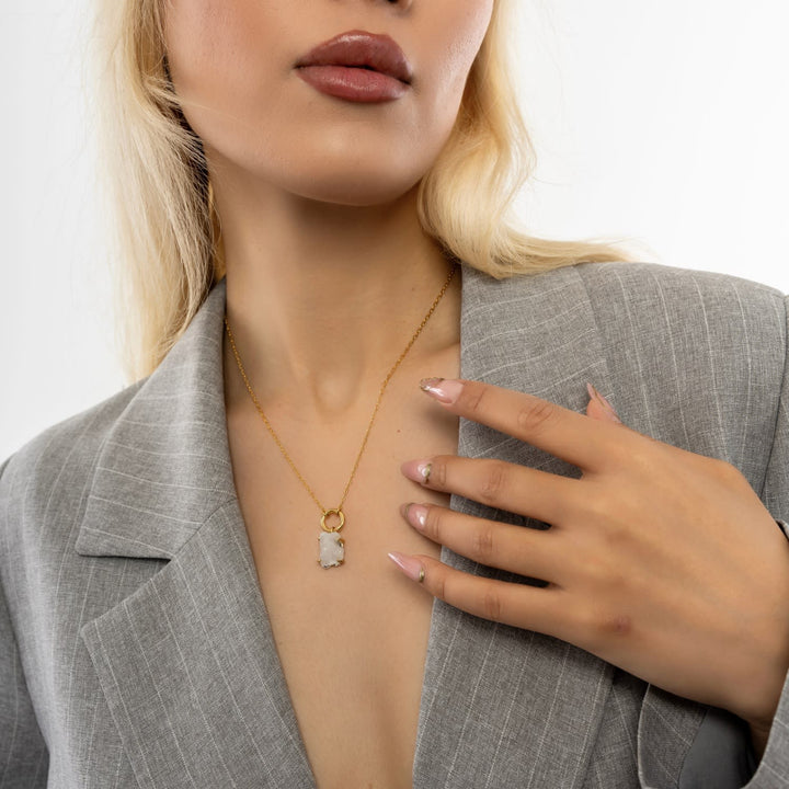 Raw Moonstone Gemstone Pendant Chain Link Gold Necklace