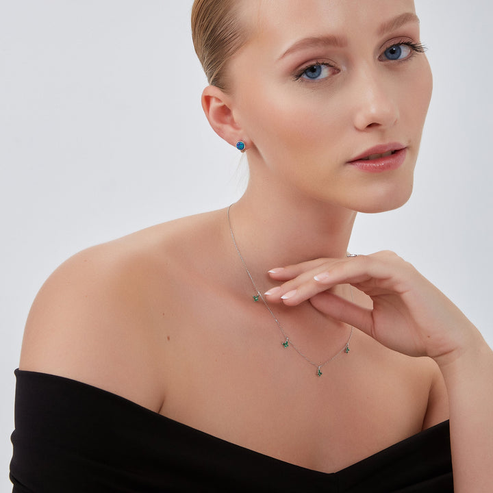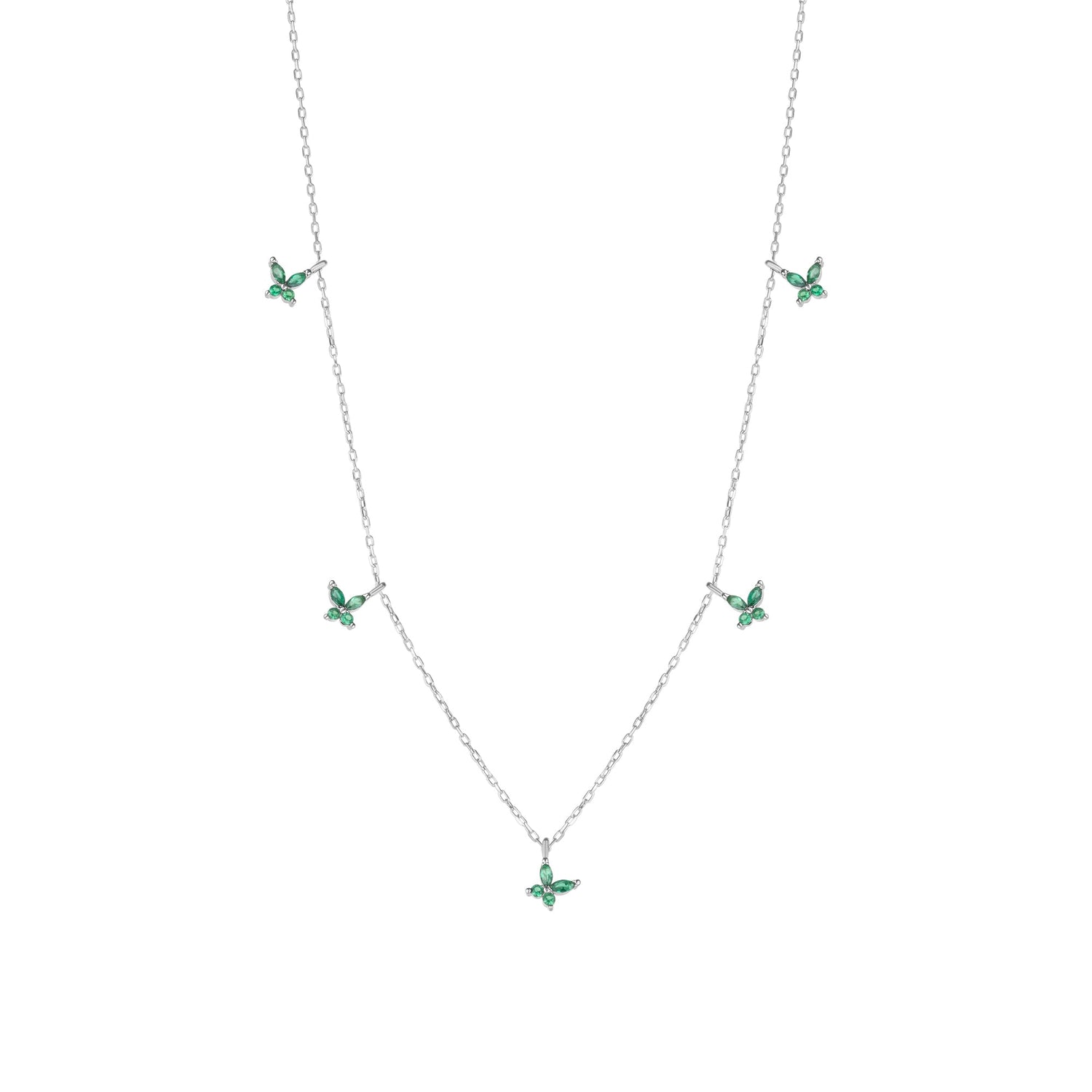This necklace is a charm necklace handcrafted with 100% sterling silver and features a green butterfly charm.