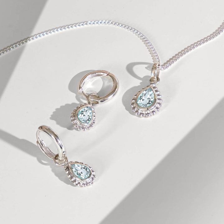 March Birthstone Sterling Silver Huggie Hoops - Aquamarine