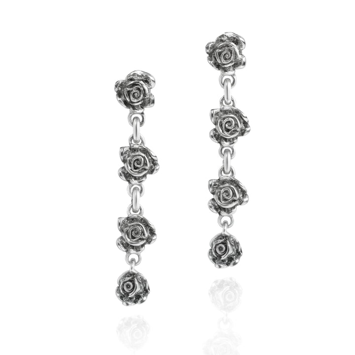 Dangle Rose Earrings In Sterling Silver - Romantic And Artisanal - Jewellery For Women