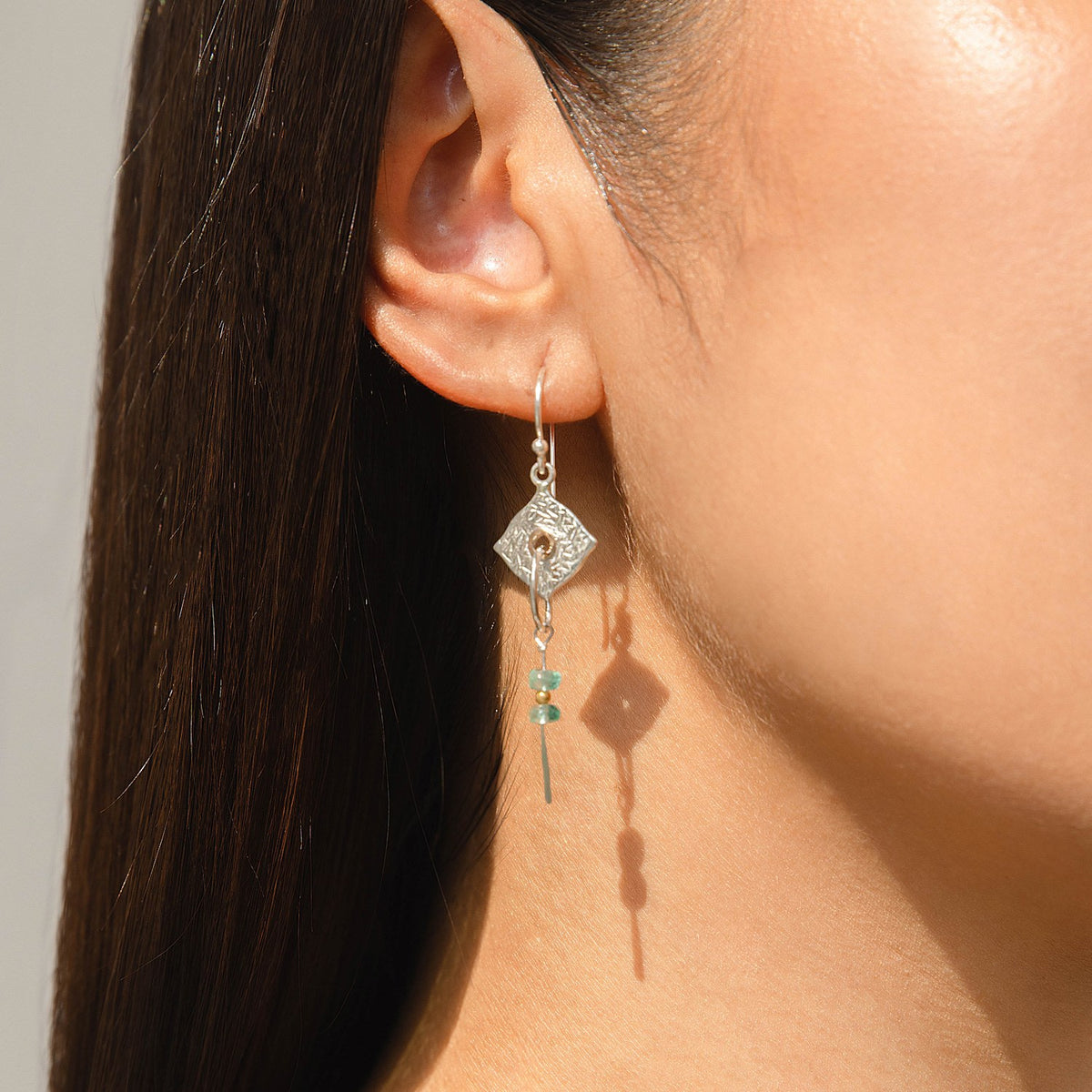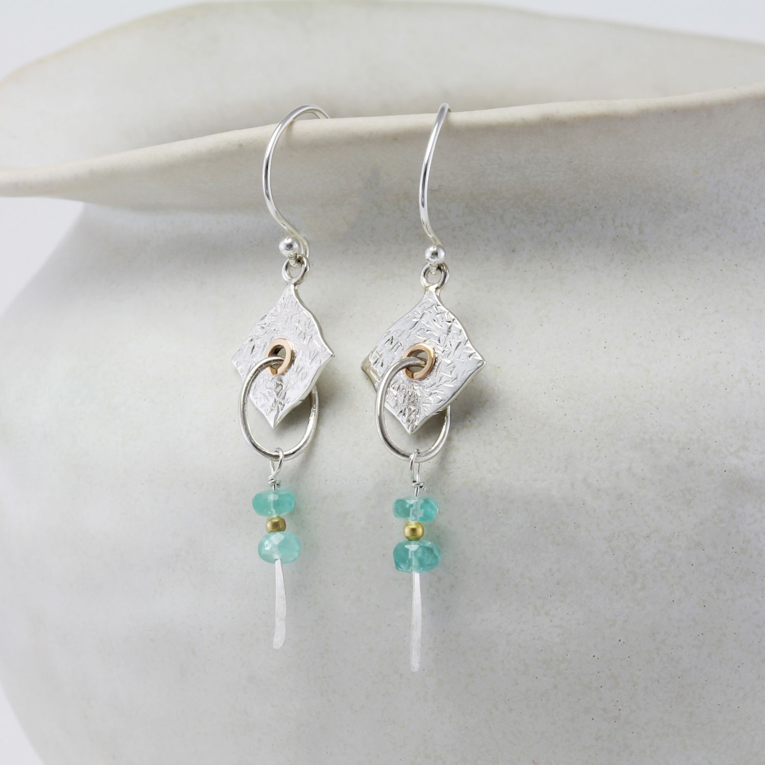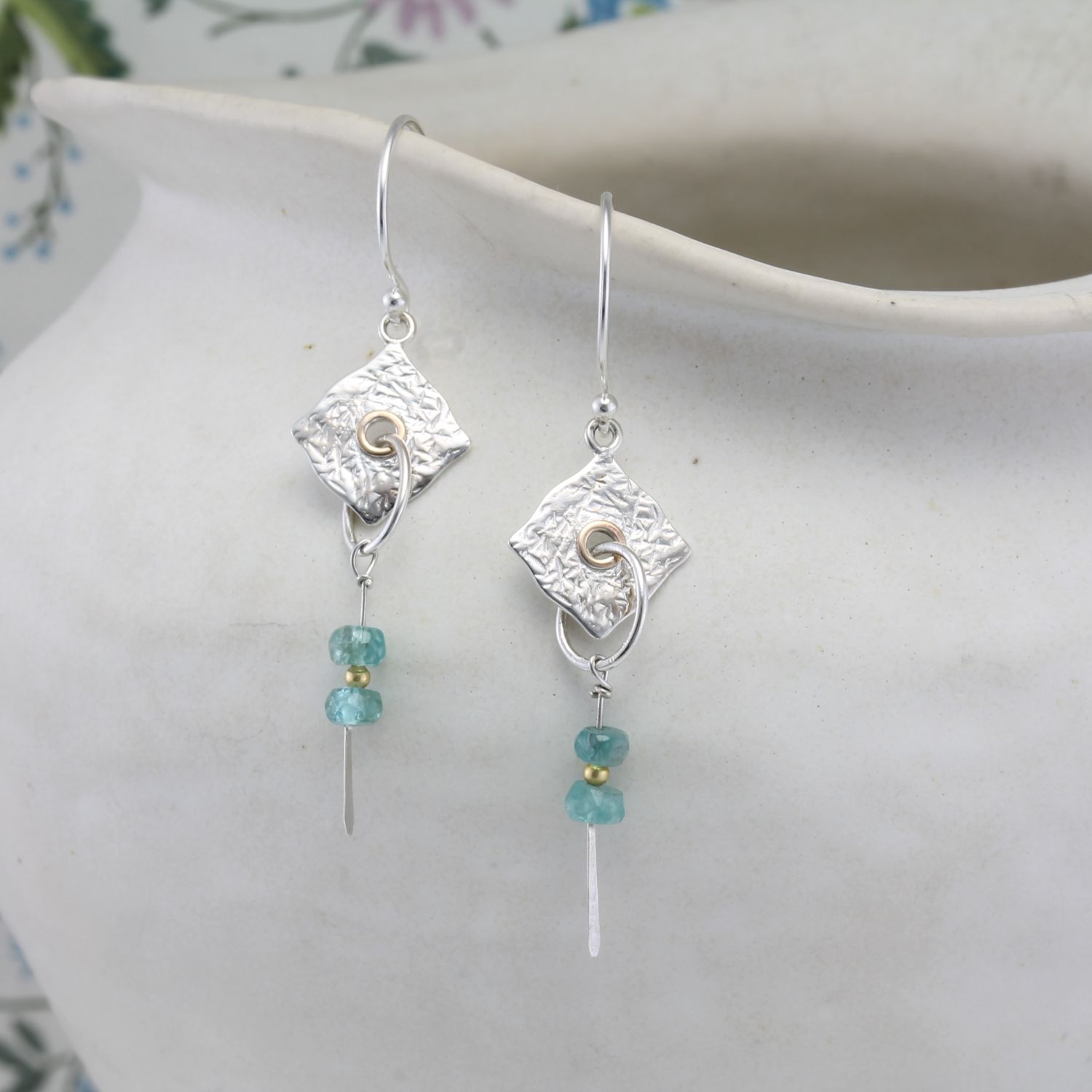 Drop Earrings With Textured Silver & Apatite