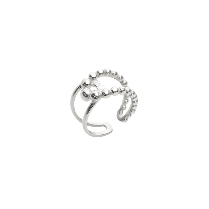 Beaded Intercepting Circle Sterling Silver Adjustable Ring - Silver