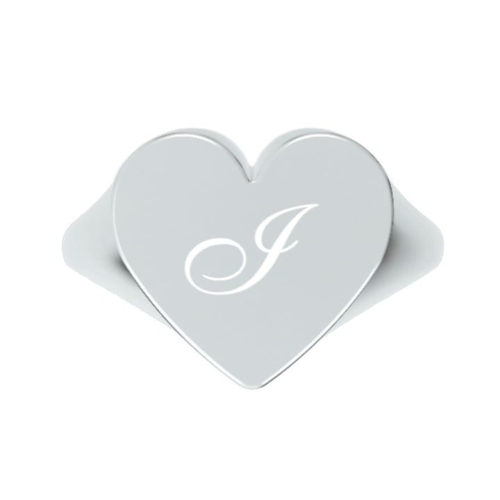 Custom Heart Shaped Chevalier Ring In Sterling Silver With -I- Initial