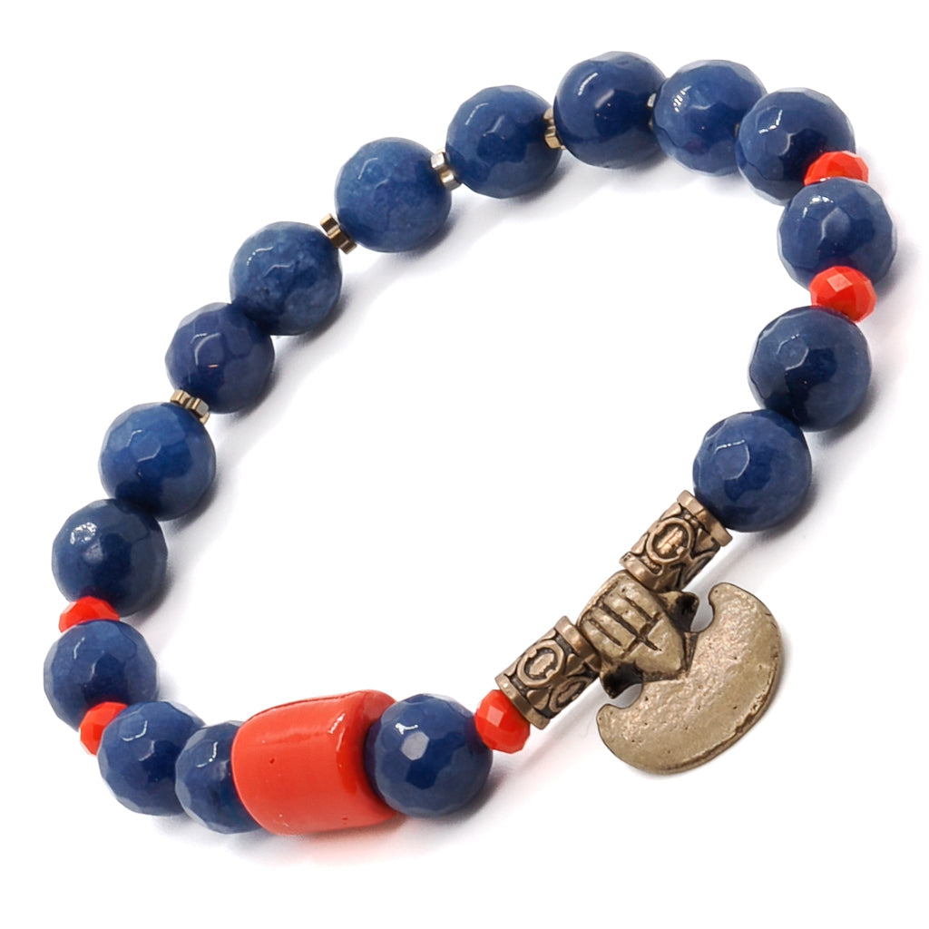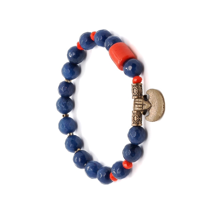 Agate Stone And Bronze Charm Beaded Bracelet - Blue