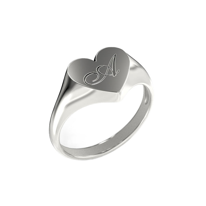 Custom Heart Shaped Chevalier Ring In Sterling Silver With -S- Initial