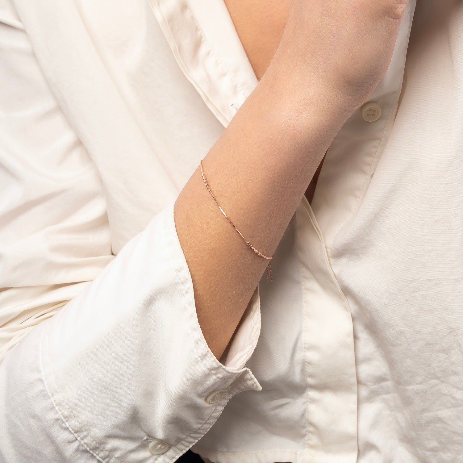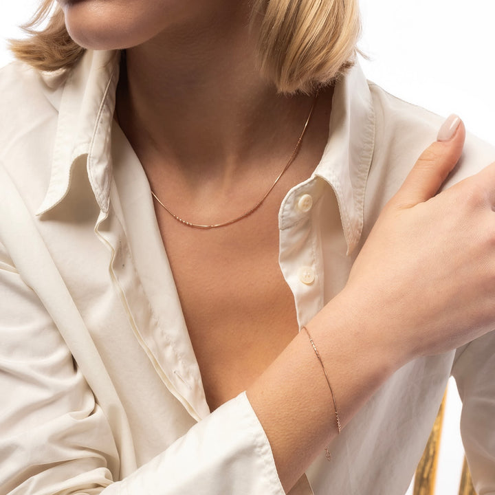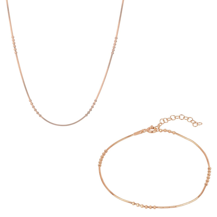 Sterling Rose Gold Bracelet & Necklace Set Small Beaded - Rose Gold