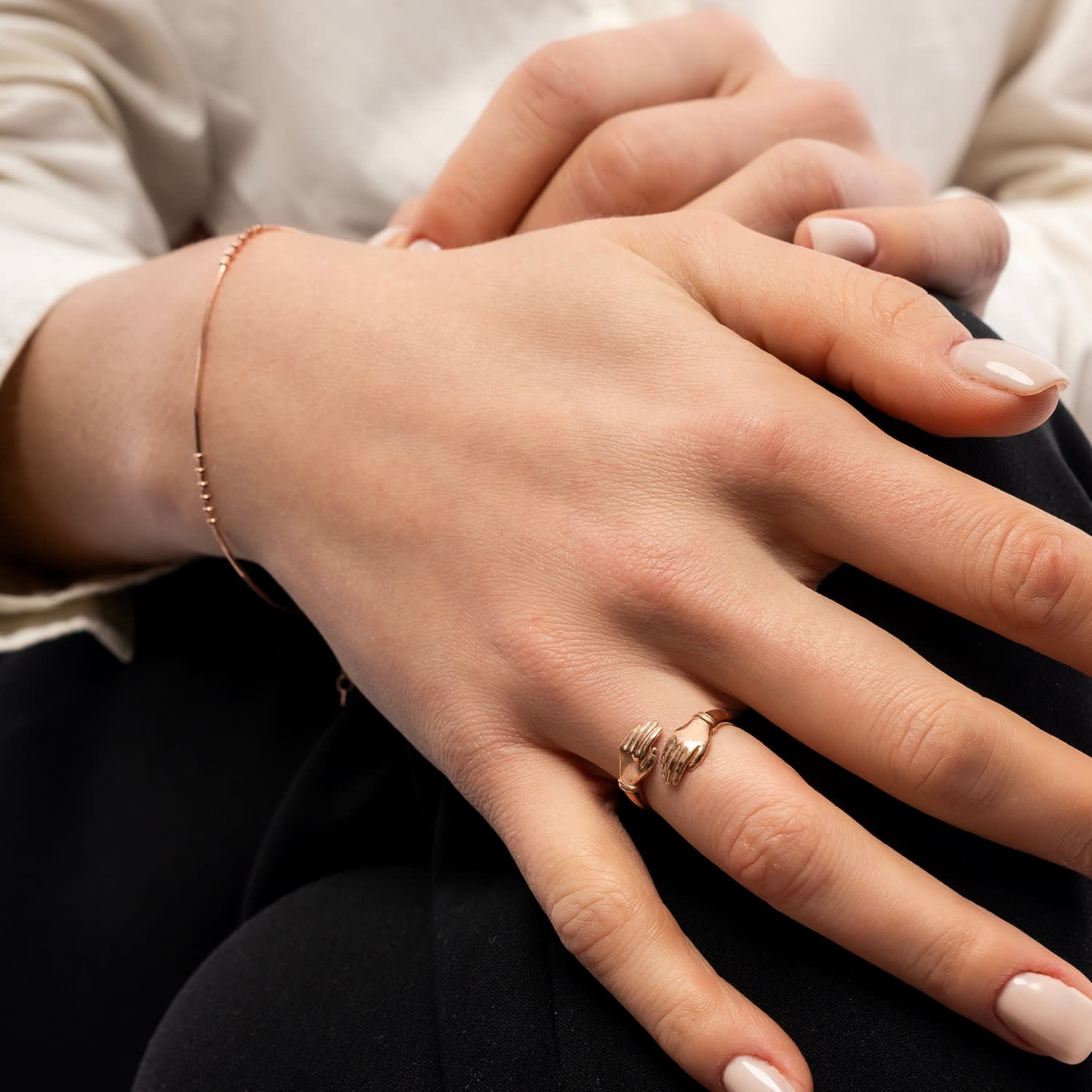 This set is crafted from sterling silver with a rose gold finish. The necklace is 18" with a 2" adjustable chain, and the bracelet is 7" with a 1" adjustable chain.