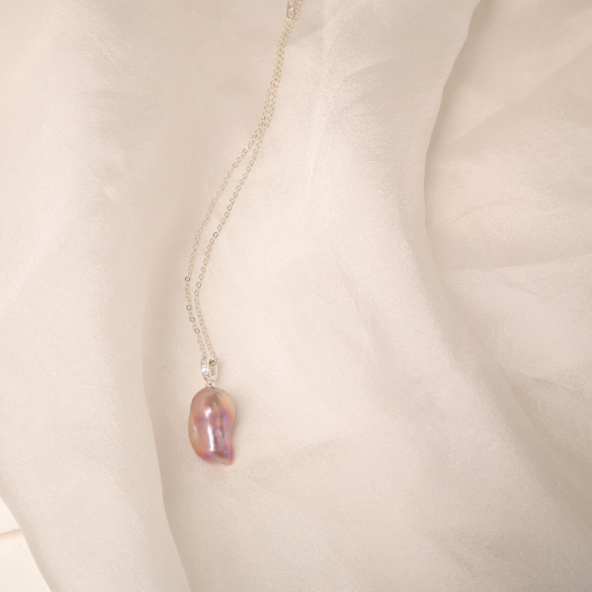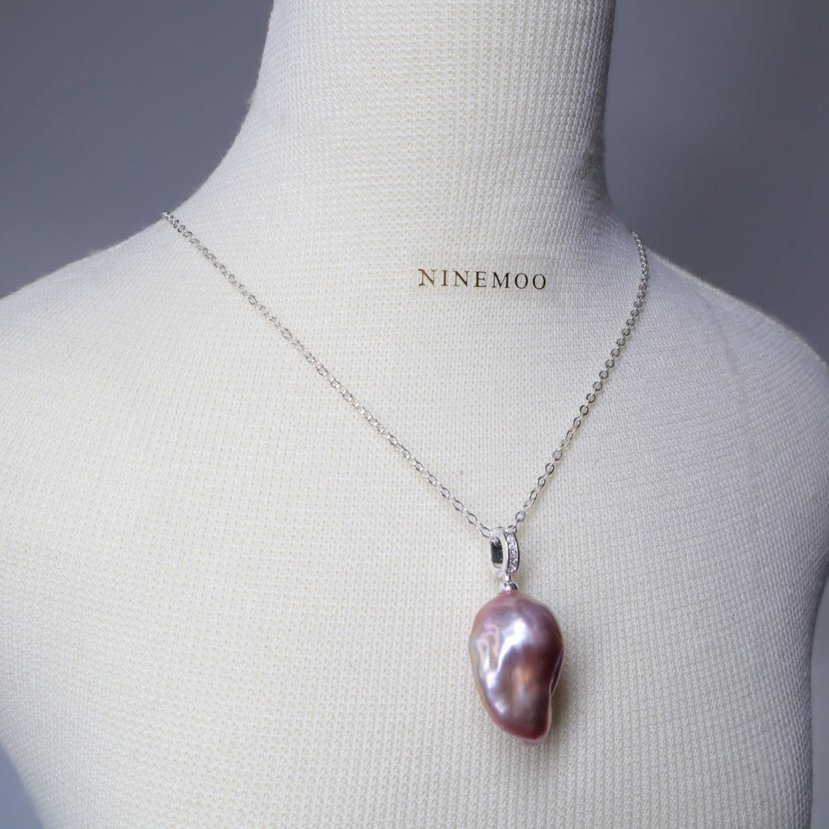 The Aurora Pink Baroque Pearl Necklace by Ninemoo is a true collector's masterpiece. This sterling silver necklace features a rare, natural pink short-tail baroque pearl with exceptional luster as its centerpiece. The pendant clasp is versatile and can be opened for personalized styling. Paired with a dazzling 5A-grade zircon, it embodies elegance and sophistication.