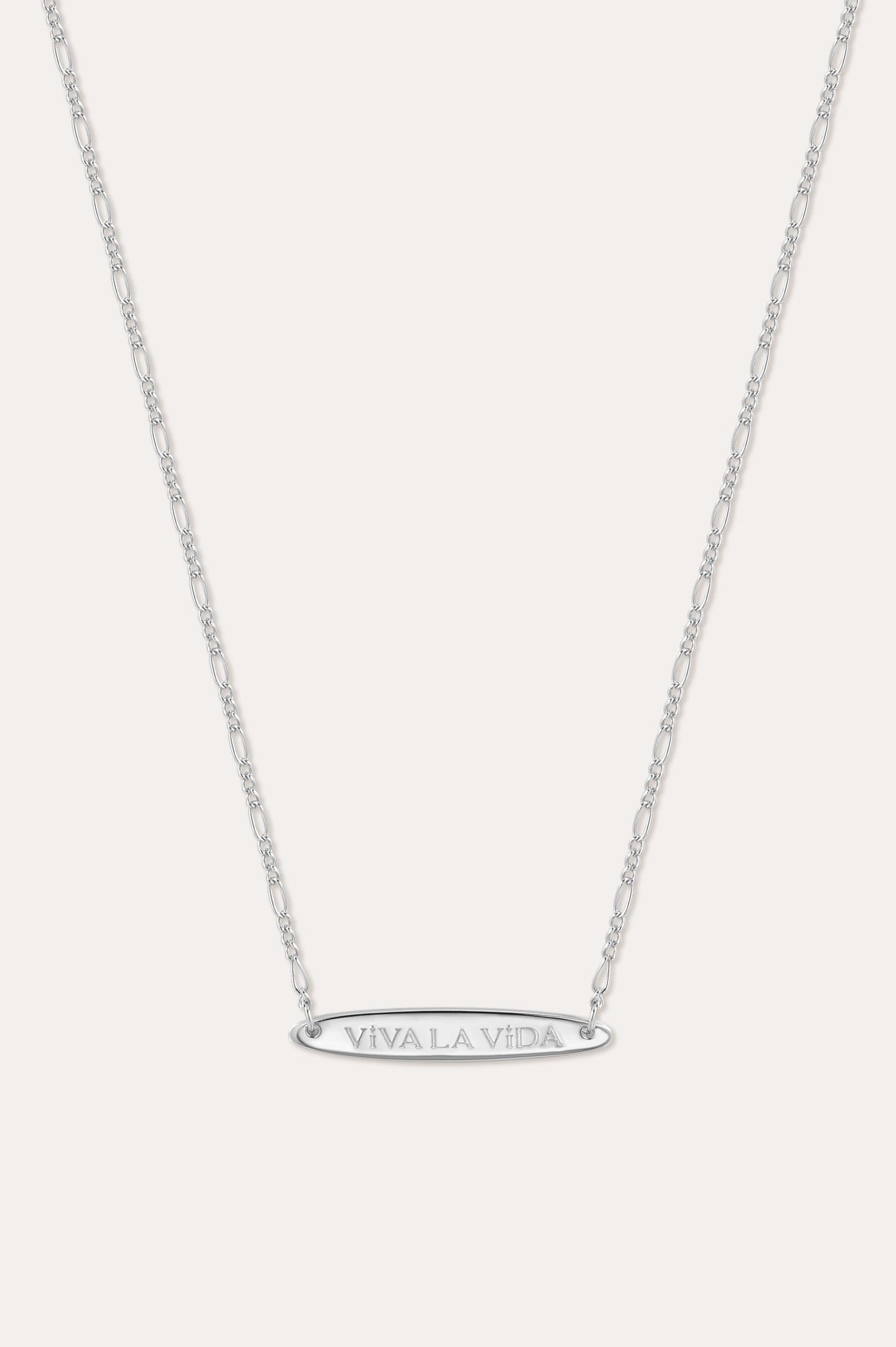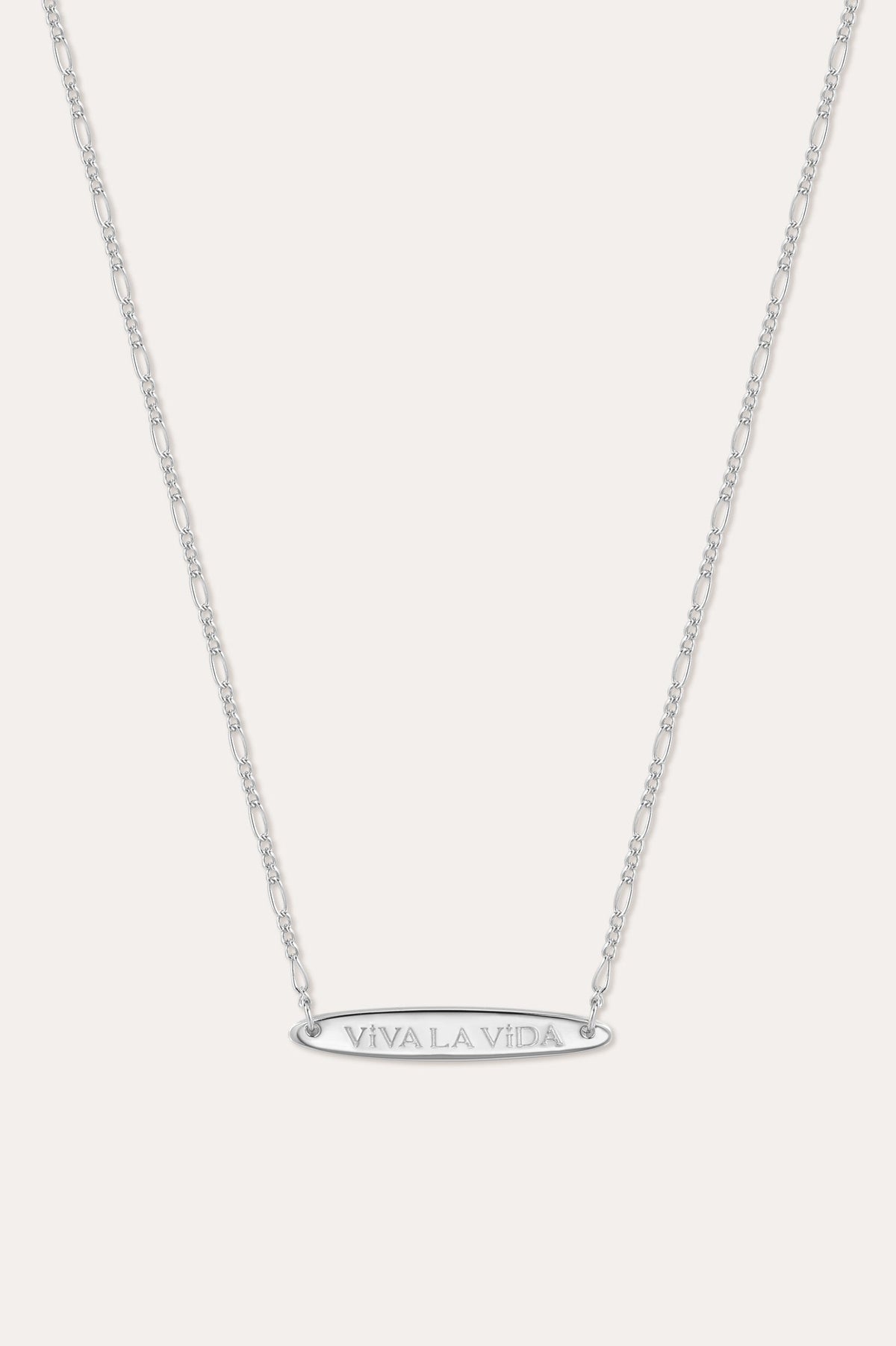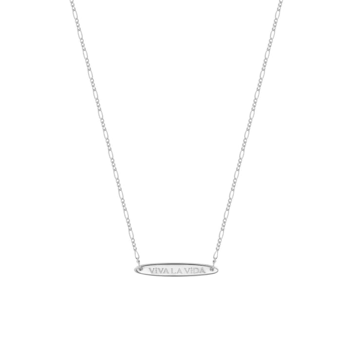 This Viva La Vida Bar Chain Necklace by Vanchi is a chic and strong statement piece that captures the spirit of embracing life. The sleek bar is engraved with "Viva La Vida," and it hangs on a delicate, adjustable figaro chain. Light yet impactful, this necklace is a daily reminder to embrace life's vibrancy with style and confidence.