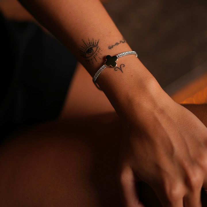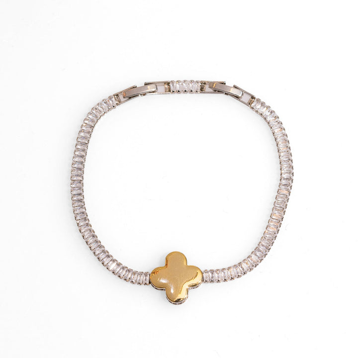 Gold Clover Charm Baguette Diamond Bracelet - Gold