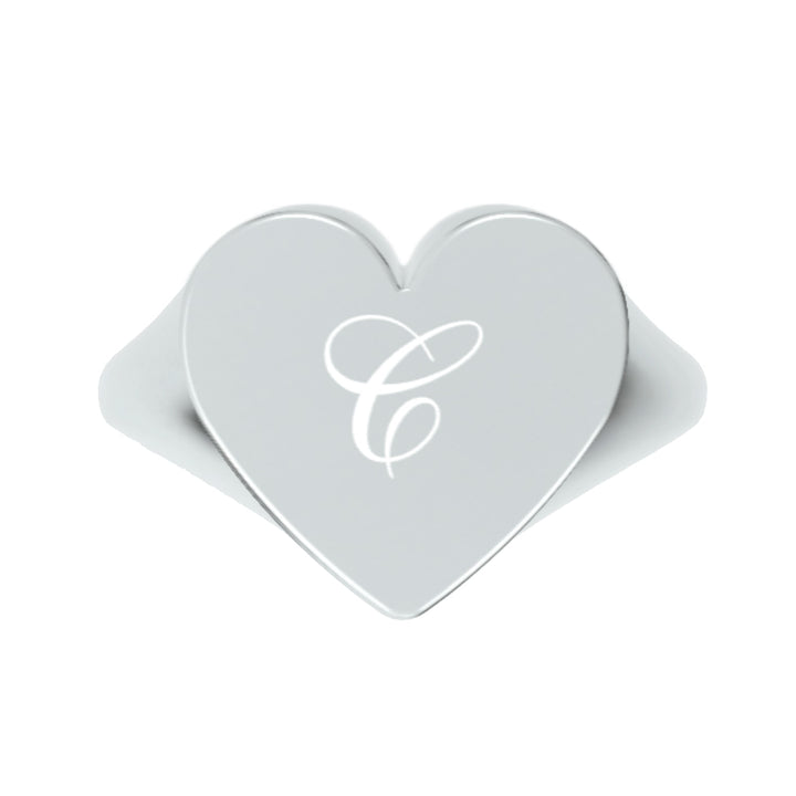 Custom Heart Shaped Chevalier Ring In Sterling Silver With -C- Initial