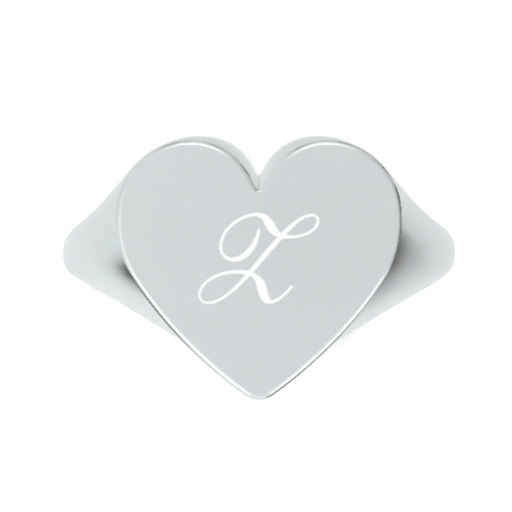 Custom Heart Shaped Chevalier Ring In Sterling Silver With -Z- Initial