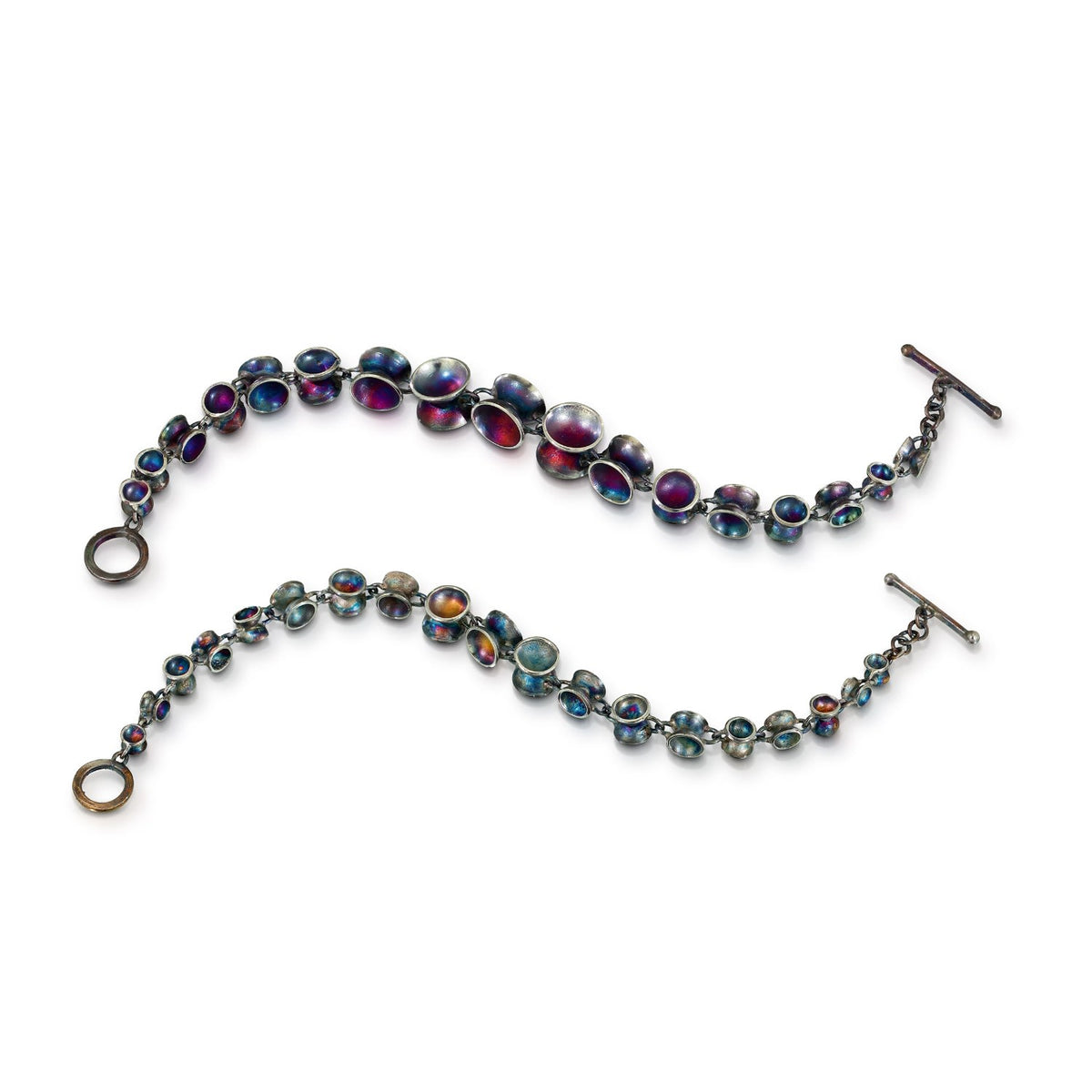 This Large Octopus Bracelet by Seth Michael Studio is an original and highly versatile accessory. Handmade from ethically sourced silver, the bracelet features a large octopus design with a multi-color patina. Its design is comfortable and easy to wear, and it comes with a standard toggle clasp. This piece is a true statement of unique, handcrafted art.