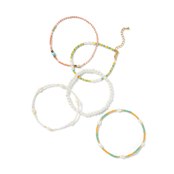 Multicolor Beaded Pearl Bracelet Set Mmrz